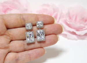 3ct Radiant Cut Diamond Elegant Halo Women Drop Earrings 14k White Gold Finish