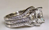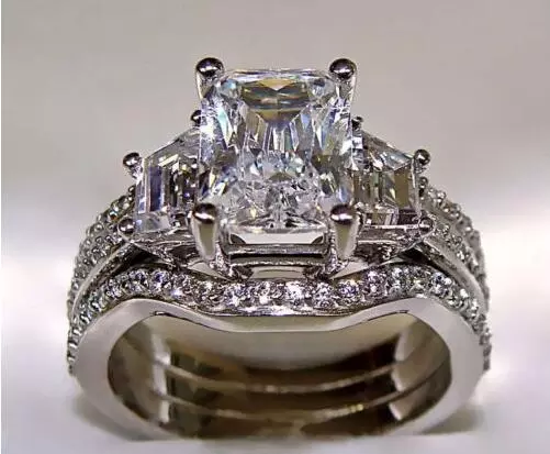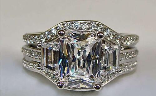 3ct Radiant Cut Diamond Engagement Ring 14k White Gold Finish Stylish Trio Set