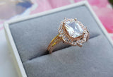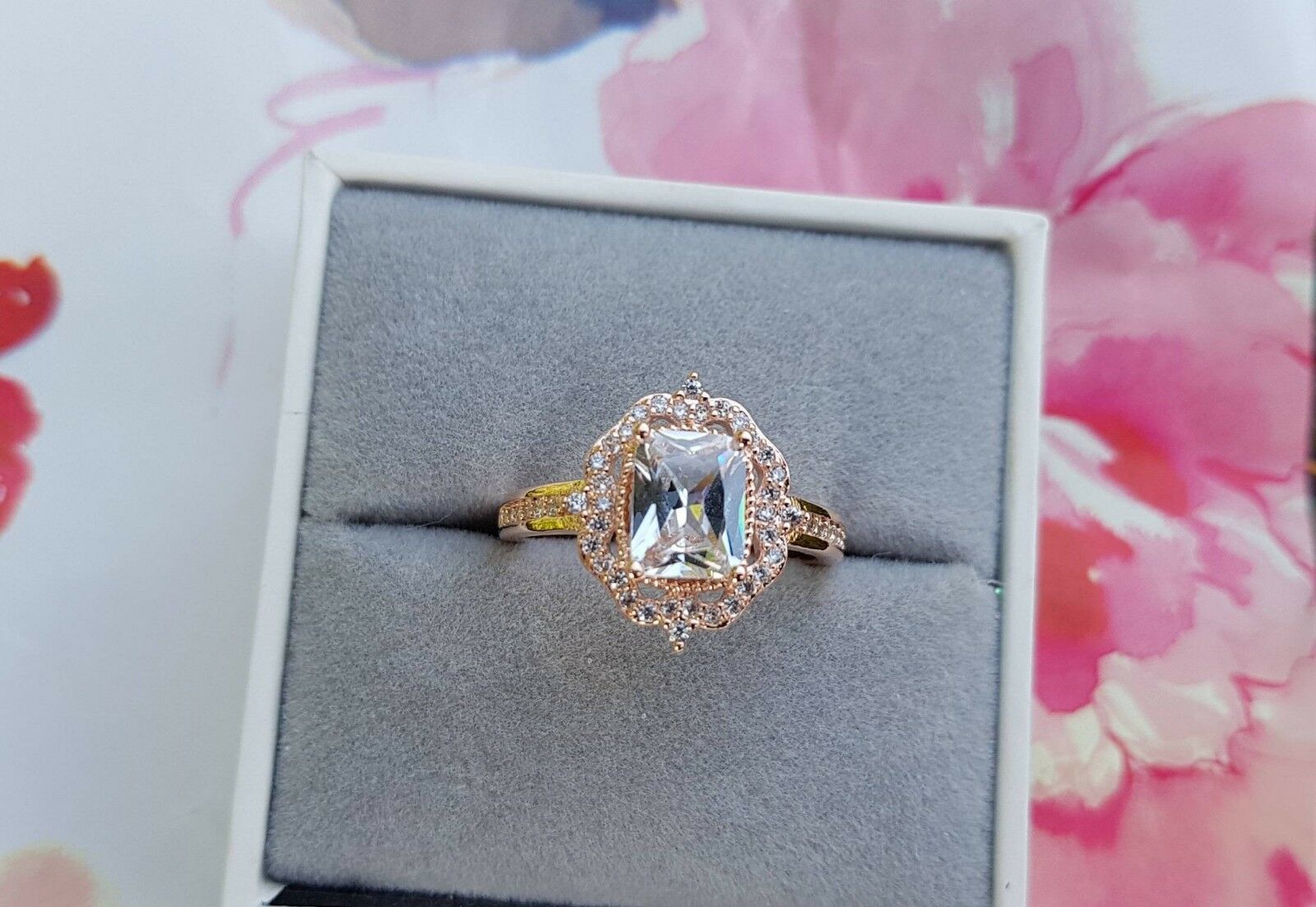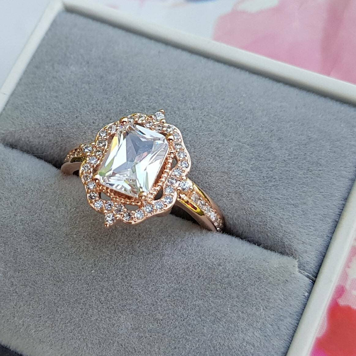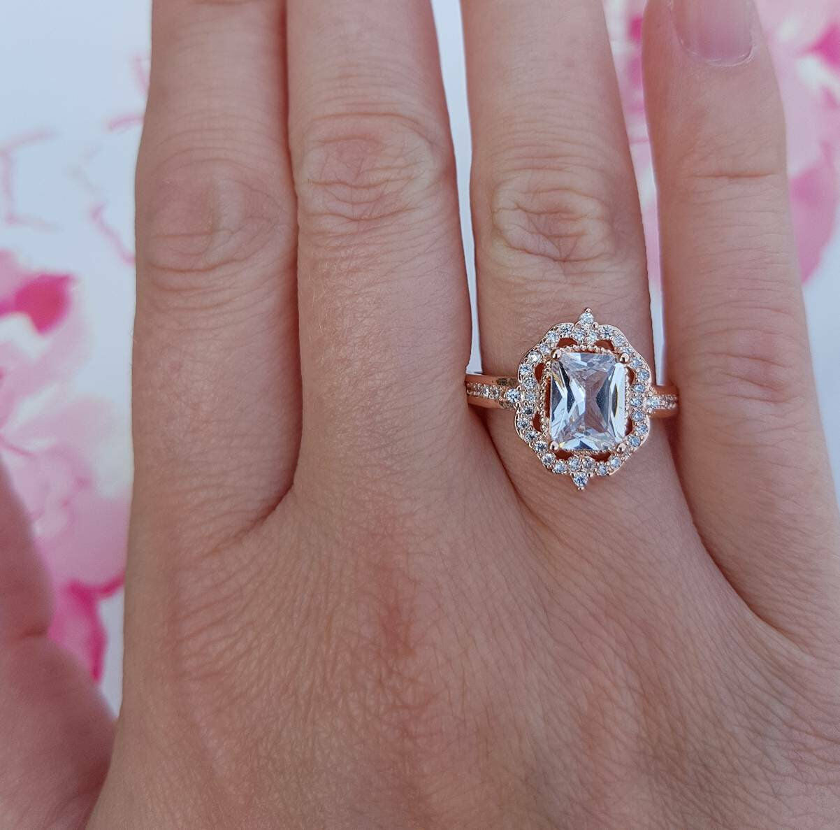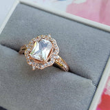 3Ct Radiant Cut Diamond Vintage Halo Art Deco Starburst Ring 14K Rose Gold Over