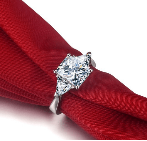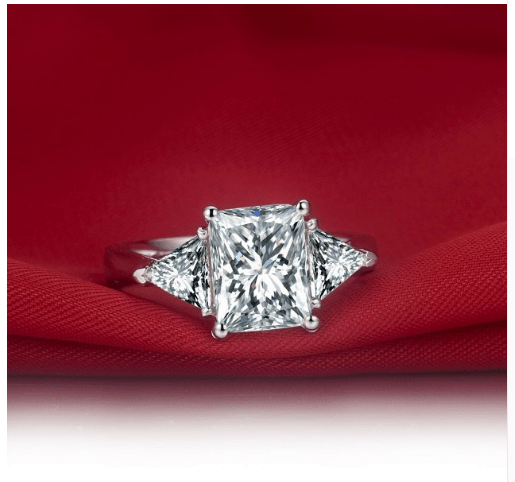 3Ct Radiant Trillion Cut Diamond Trilogy Engagement Ring 14K White Gold Finish