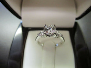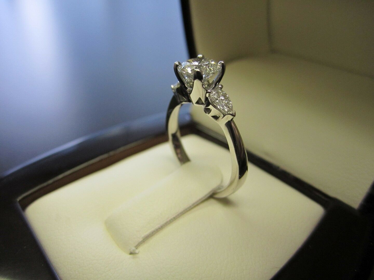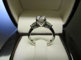 3Ct Round Brilliant Cut Diamond Solitaire Ring 18K White Gold Finish Pear Accent