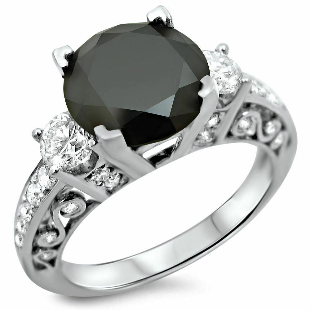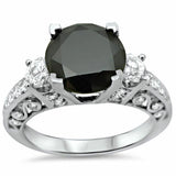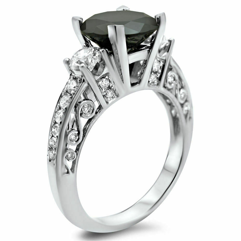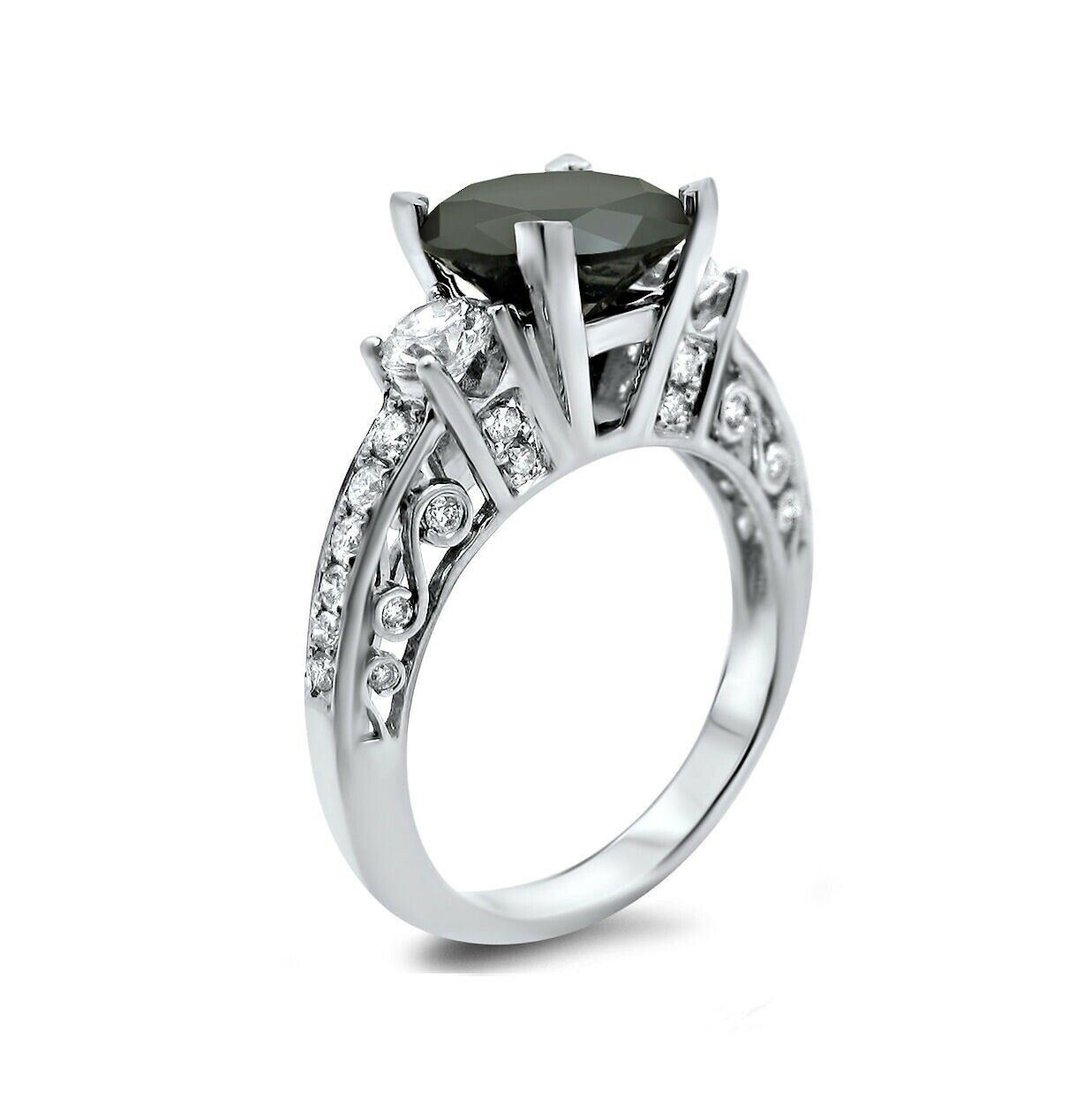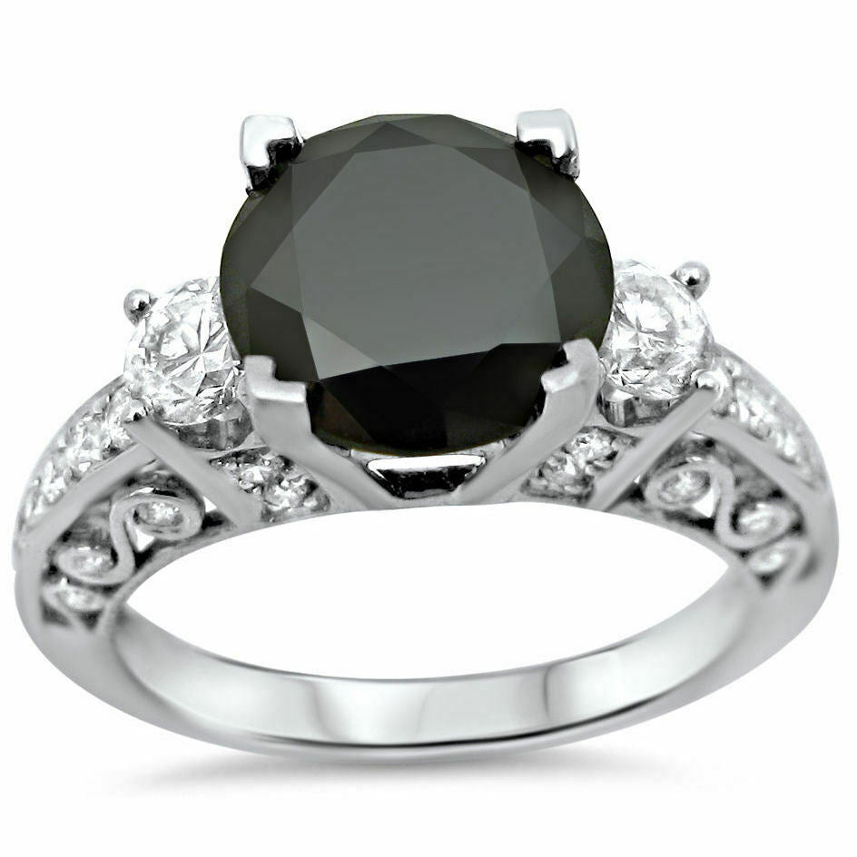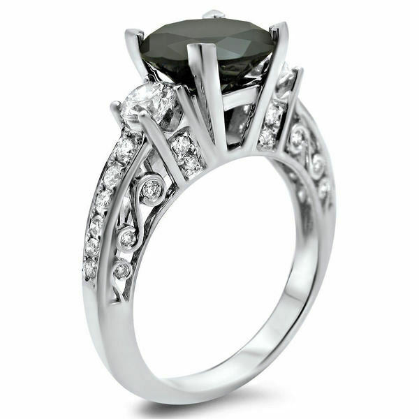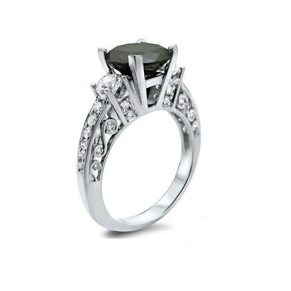 3Ct Round Cut Black Diamond Filigree Vintage Solitaire Ring 14K White Gold Over