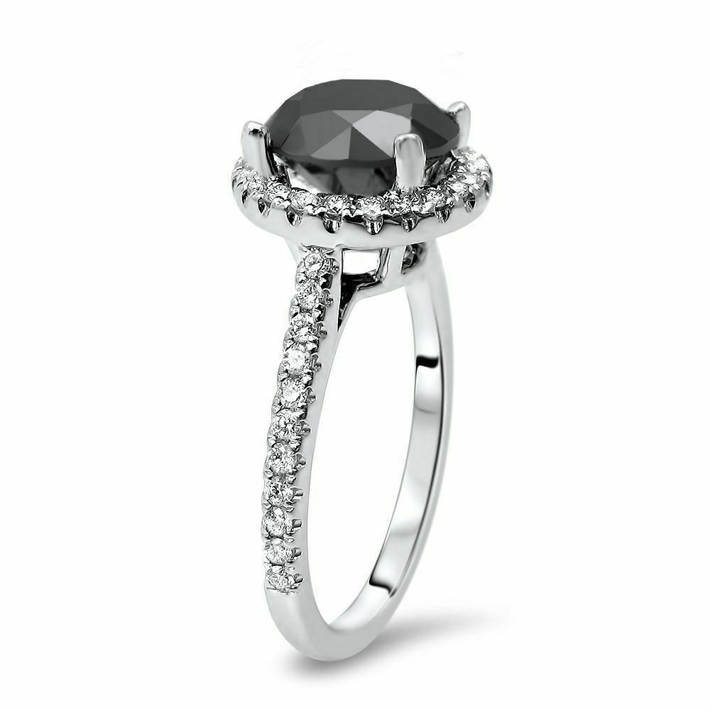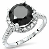 3Ct Round Cut Black Diamond Halo Solitaire Engagement Ring 18K White Gold Finish
