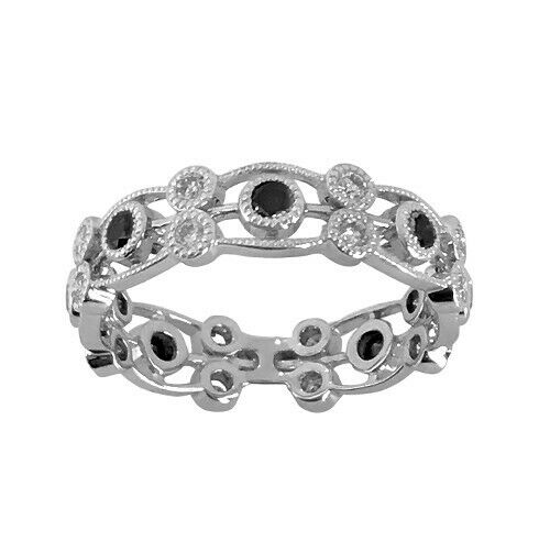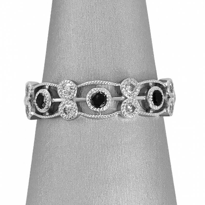 3Ct Round Cut Black Diamond Vintage Milgrain Wedding Band 14K White Gold Finish