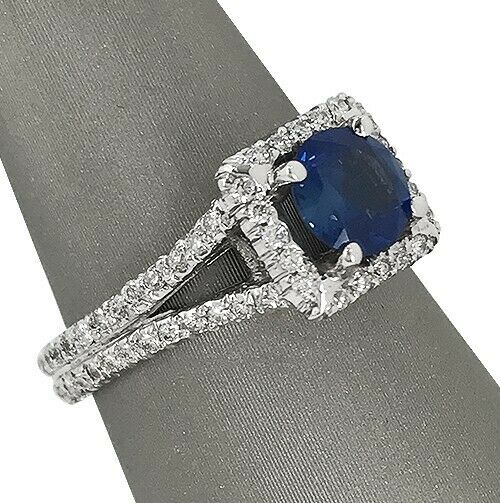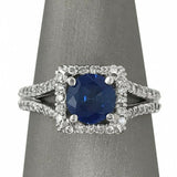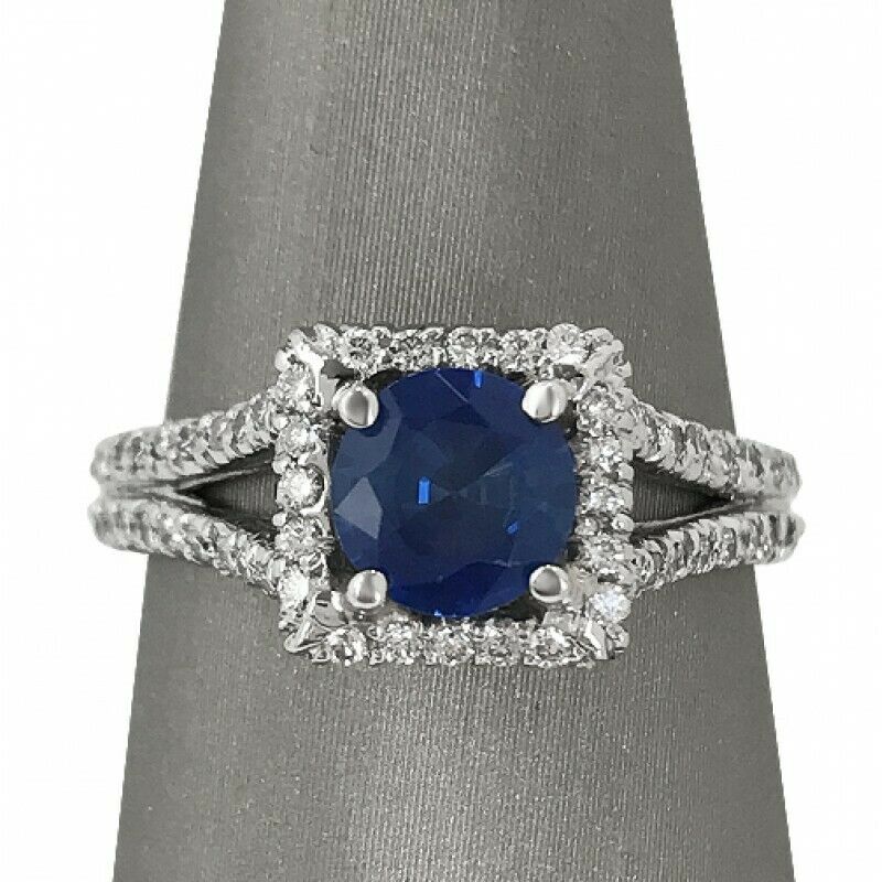3Ct Round Cut Blue Sapphire Diamond Split Band Dual Halo Ring 14K WhiteGold Over