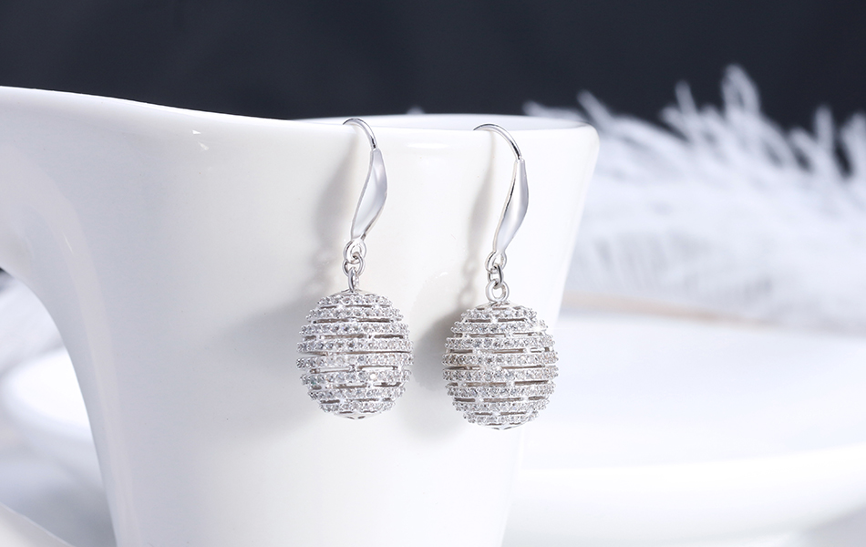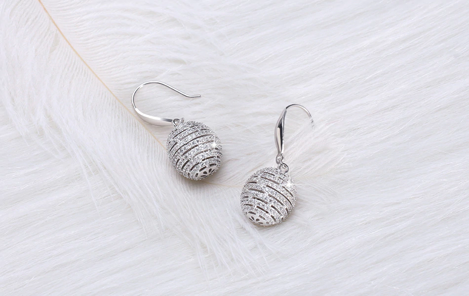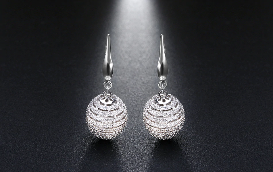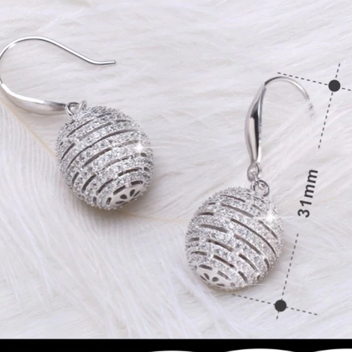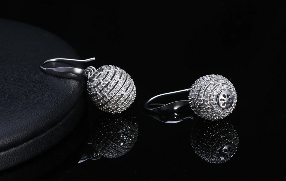 3ct Round Cut Diamond Ball Shape Hollow Design Drop Earrings 14k WhiteGold Over