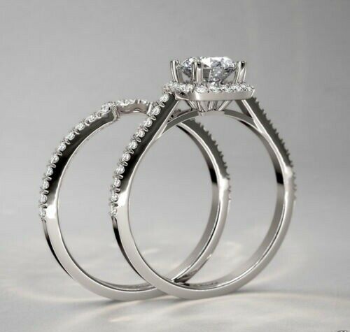 3Ct Round Cut Diamond Bridal Set Halo Ring Stylish Band 14K White Gold Finish