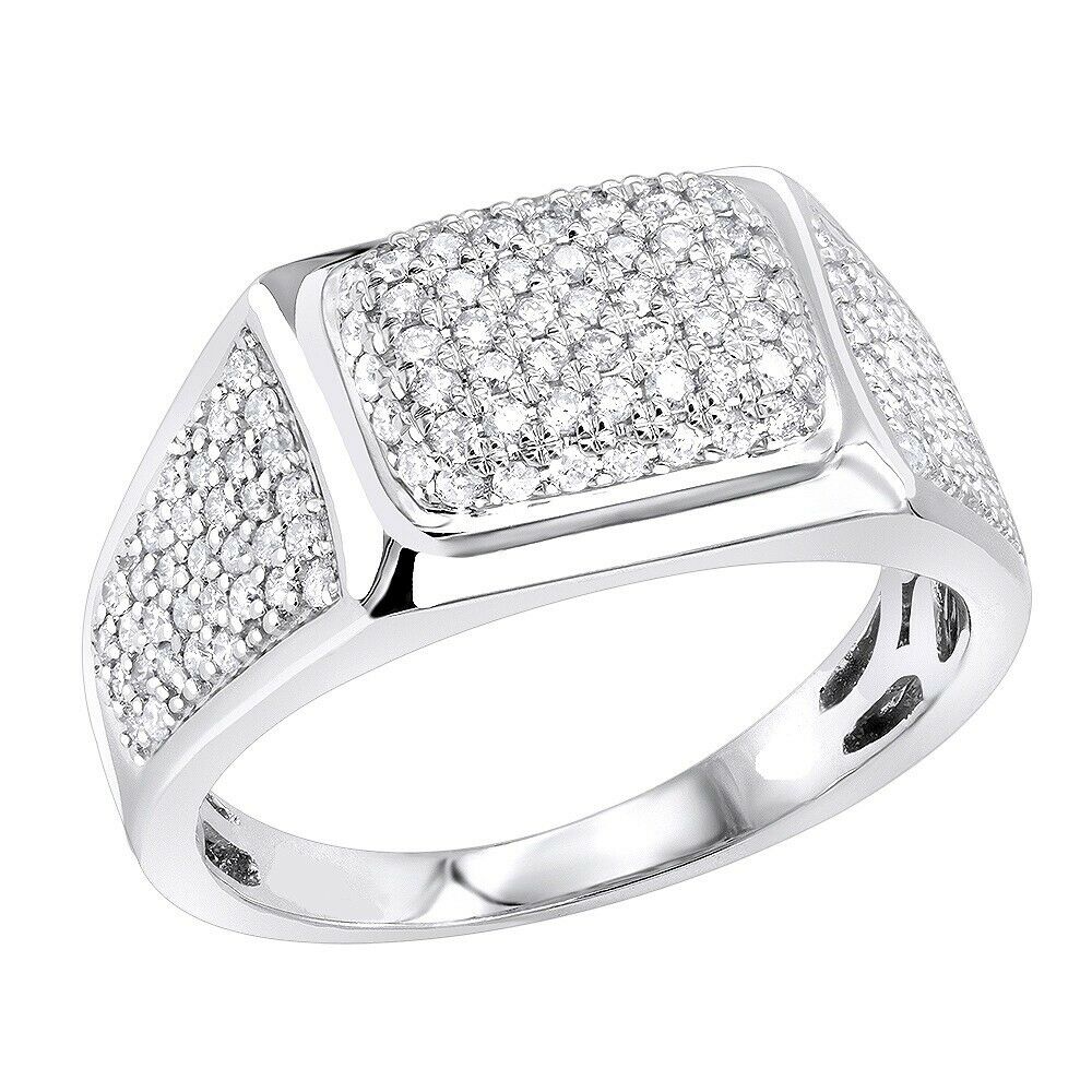 3Ct Round Cut Diamond Cluster Accent Men Engagement Ring 14K White Gold Finish