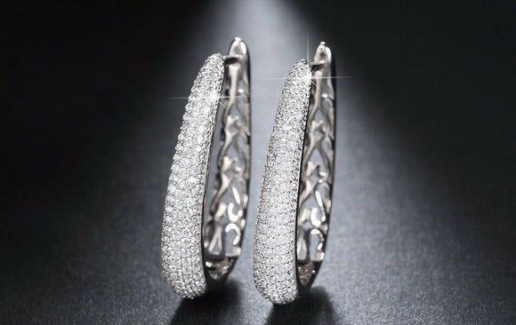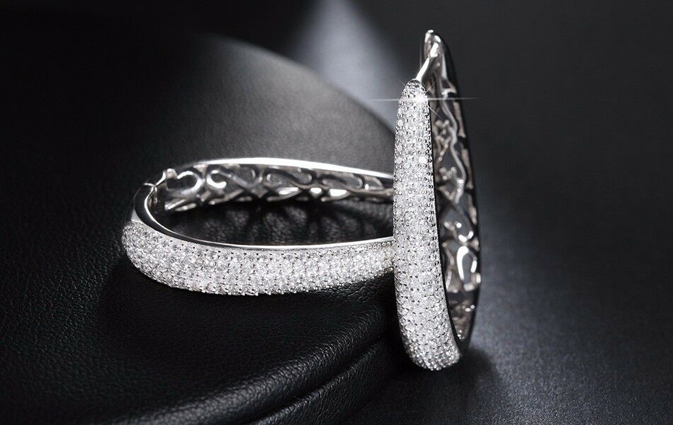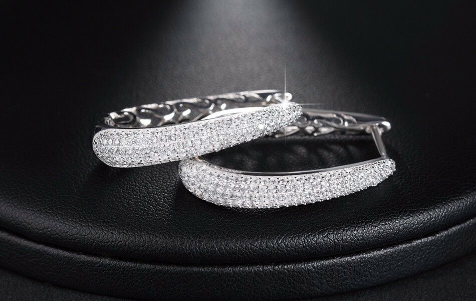 3ct Round Cut Diamond Cluster Wedding Party Hoop Earrings 14k White Gold Finish