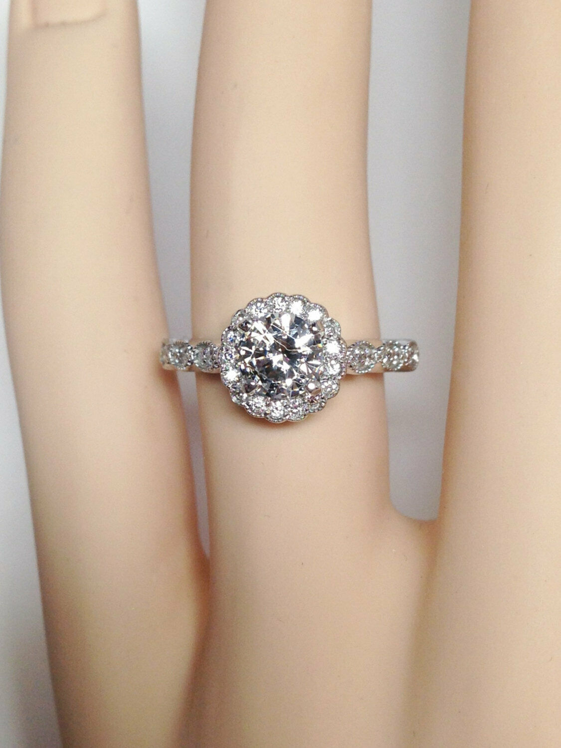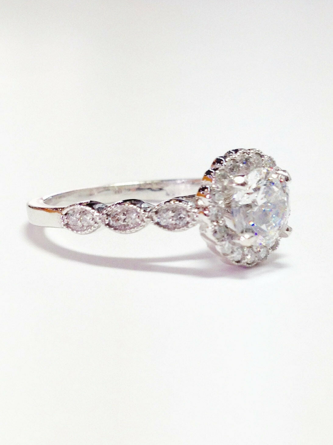 3Ct Round Cut Diamond Engagement Halo Ring 14K White Gold Over Vintage Milgrain