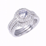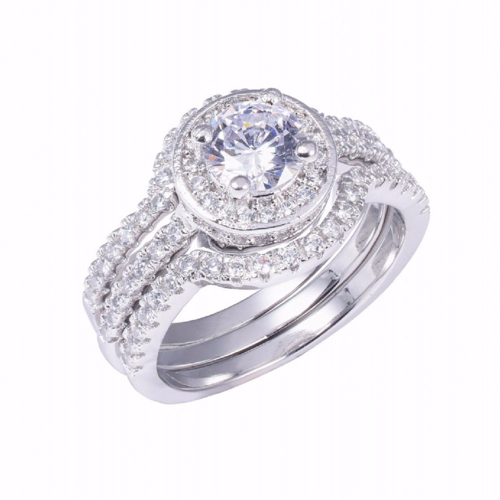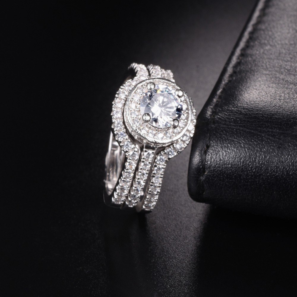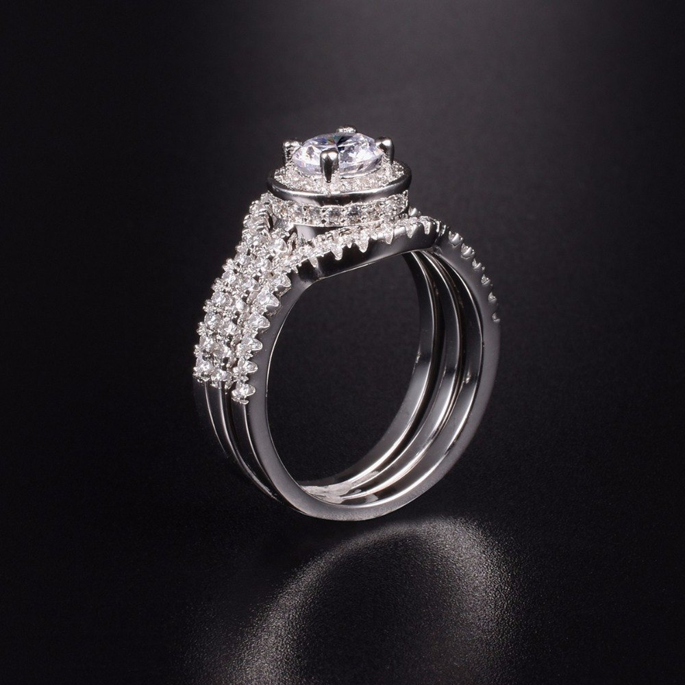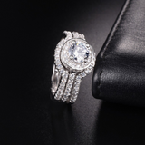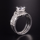 3ct Round Cut Diamond Engagement Ring 14k WhiteGold Over Halo Solitaire Trio Set