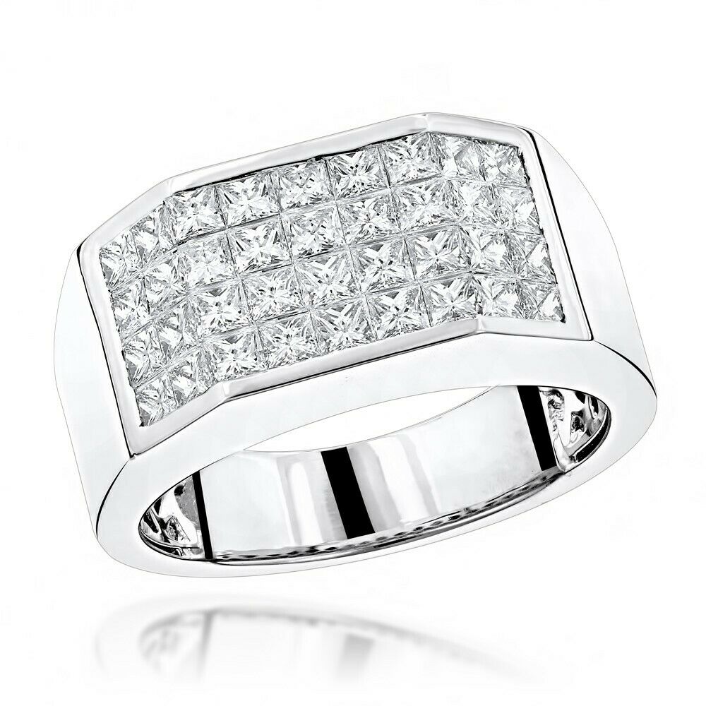 3Ct Round Cut Diamond Four Row Cluster Men Engagement Ring 14K White Gold Finish