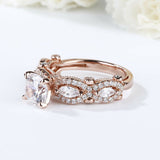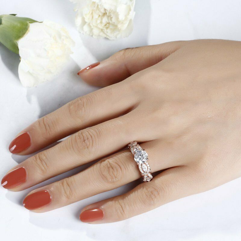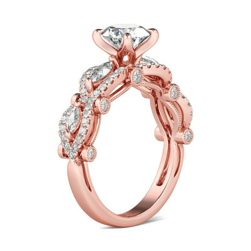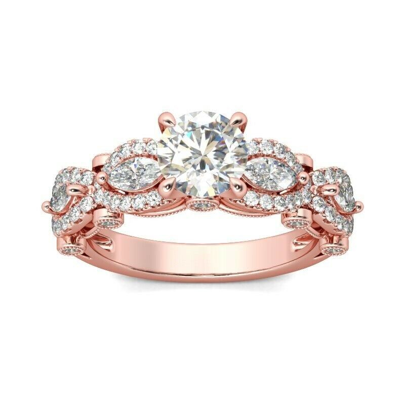 3Ct Round Cut Diamond Halo Marquise Accents Engagement Ring 14K Rose Gold Finish