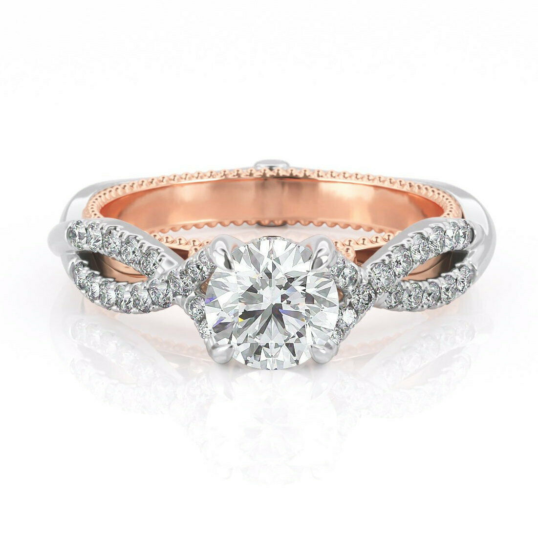 3Ct Round Cut Diamond Split Shank Gatsby Engagement Ring 14K Dual Gold Finish