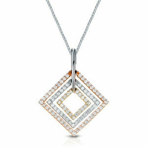 3Ct Round Cut Diamond Square Halo Tricolor Pendant 14K Gold Finish NO CHAIN