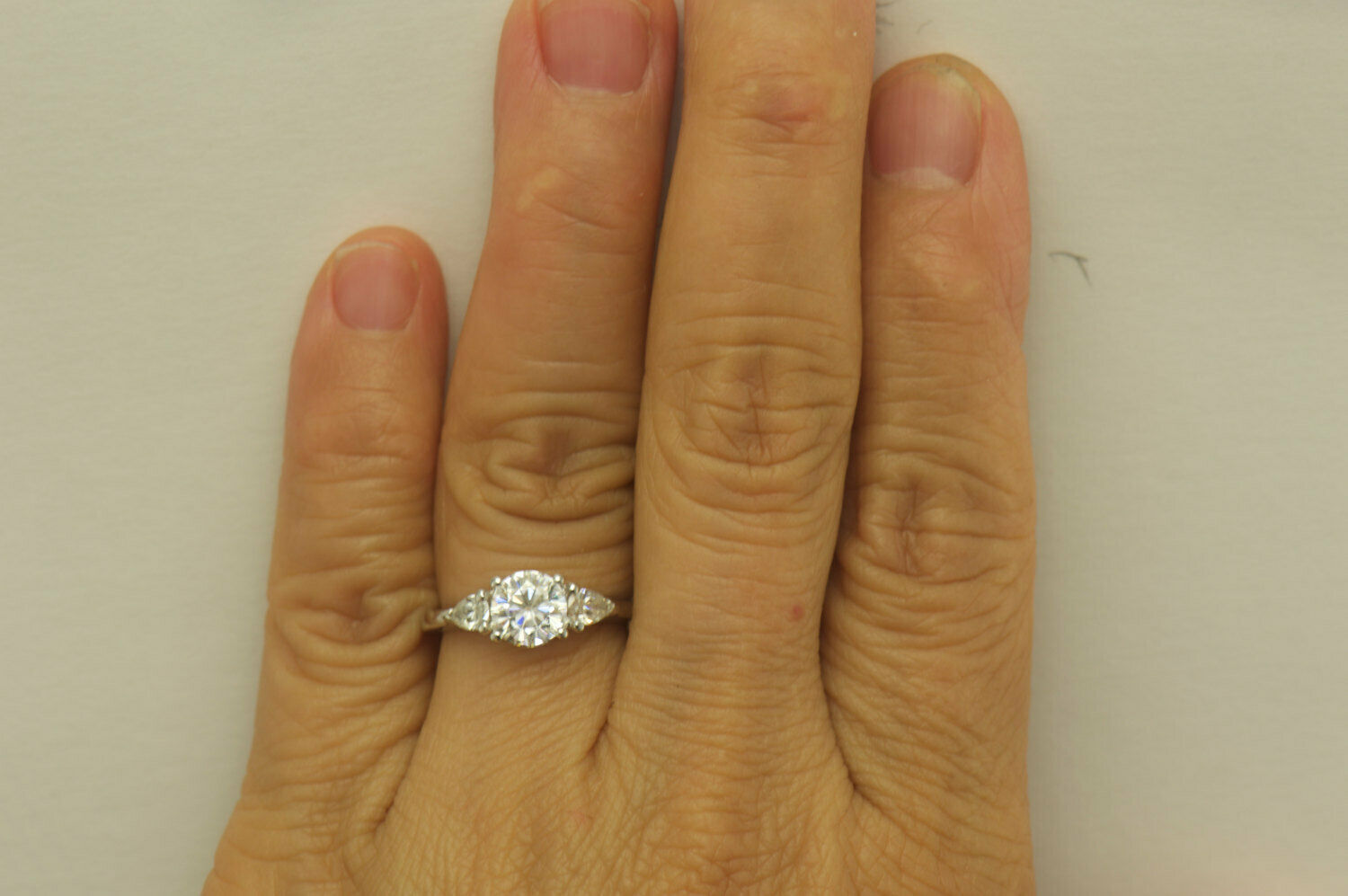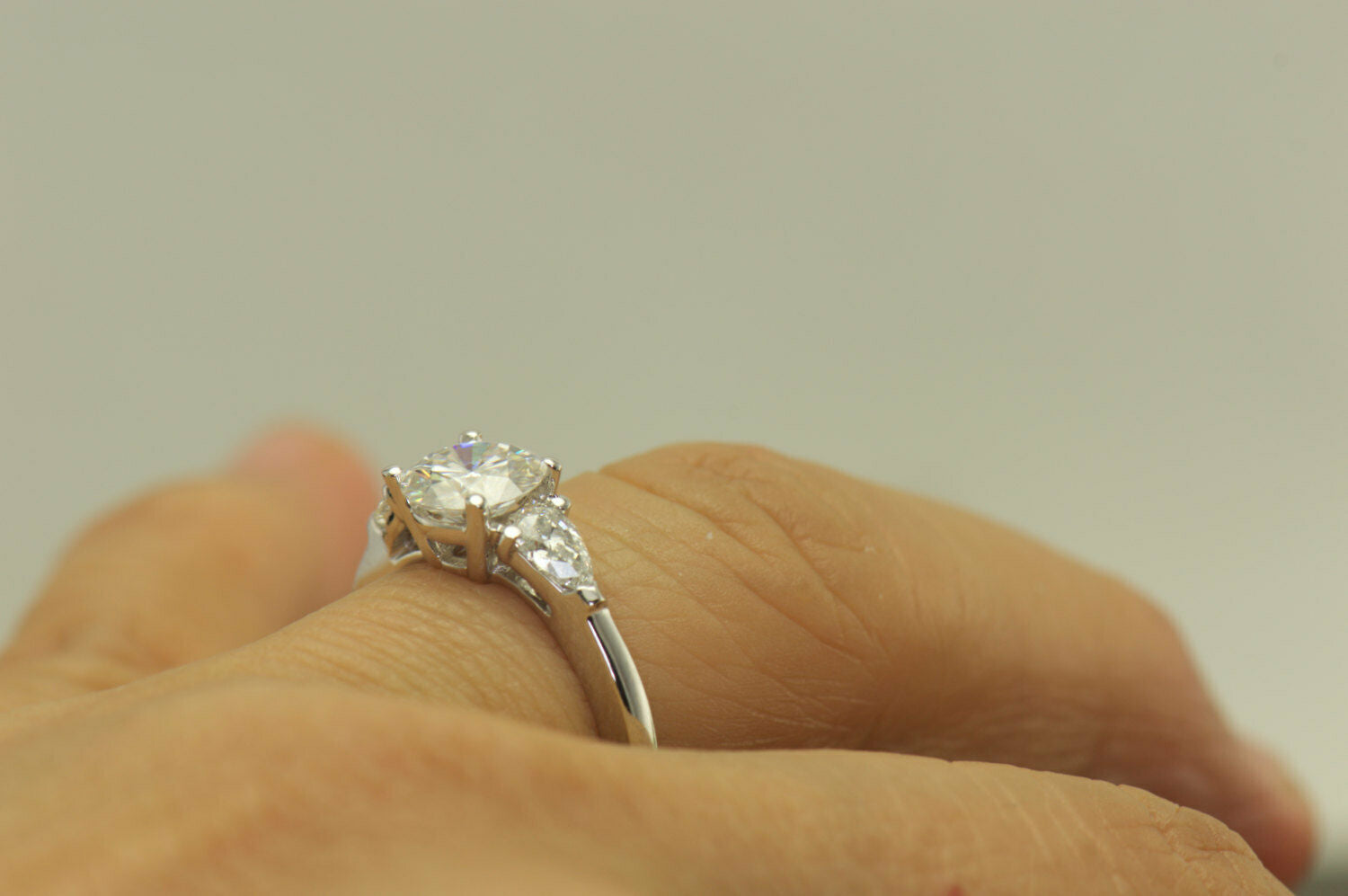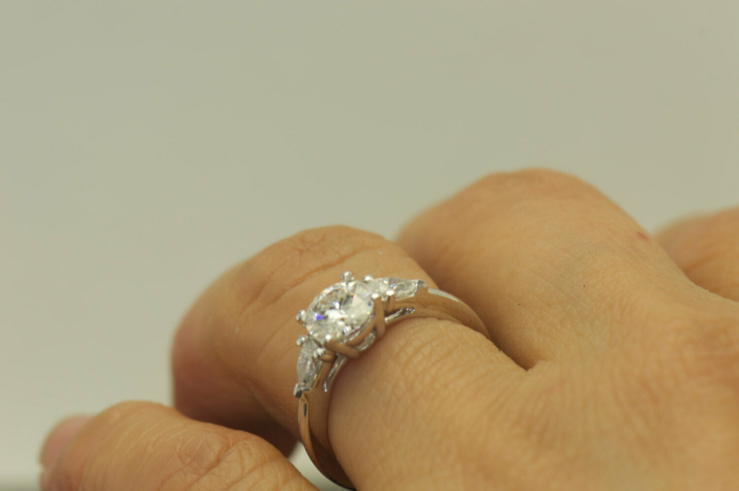 3Ct Round Cut Diamond Trilogy Solitaire Ring 14K White Gold Finish Pear Accents