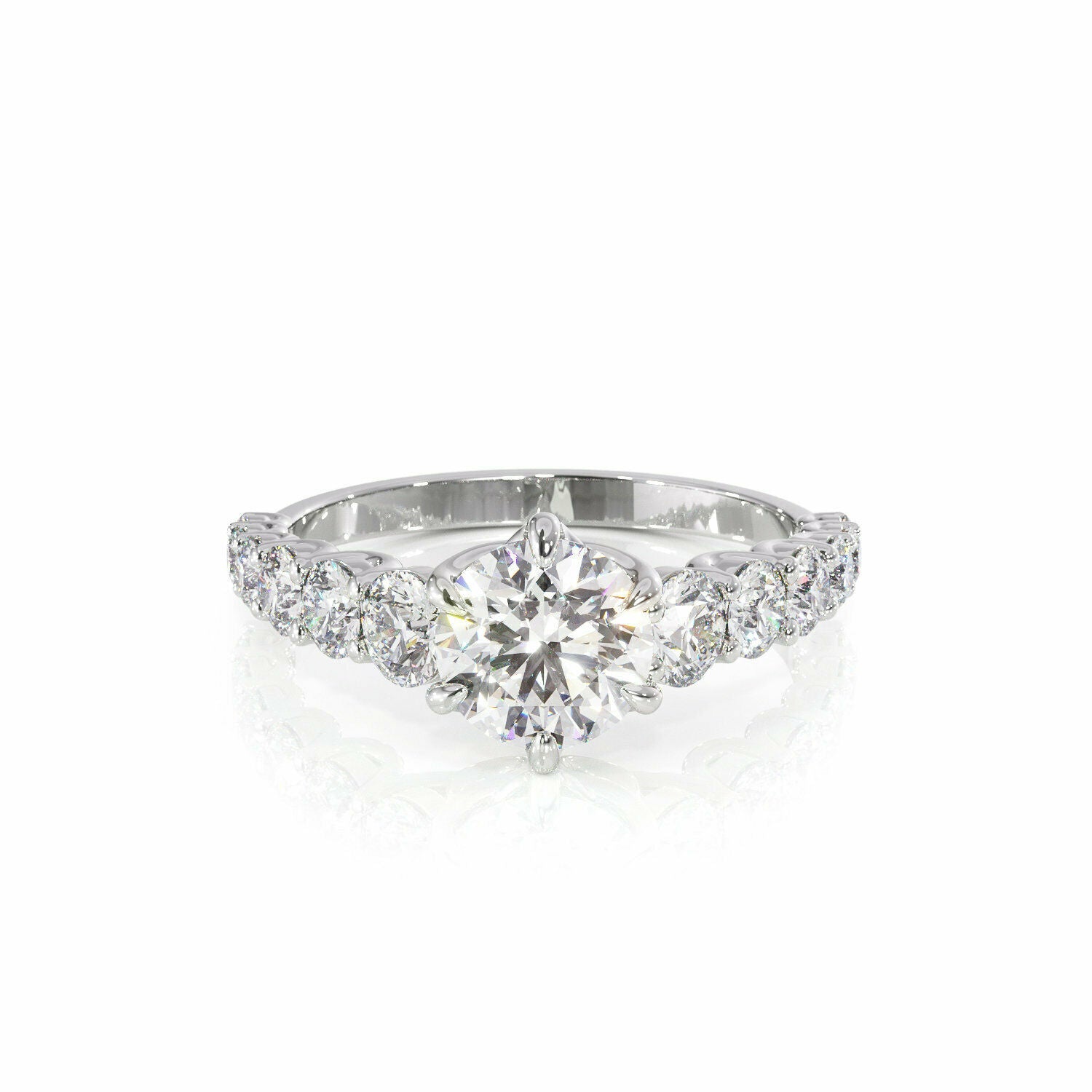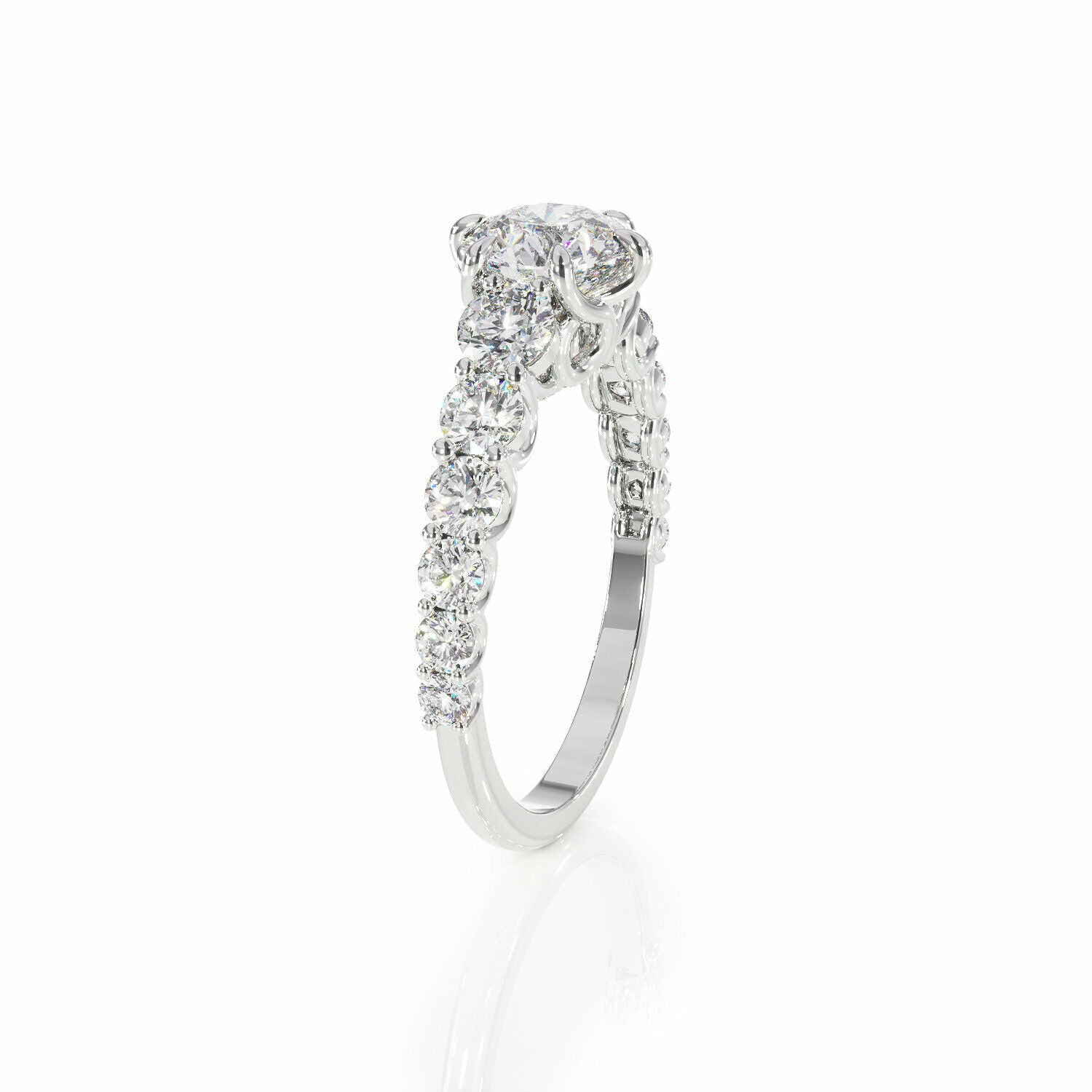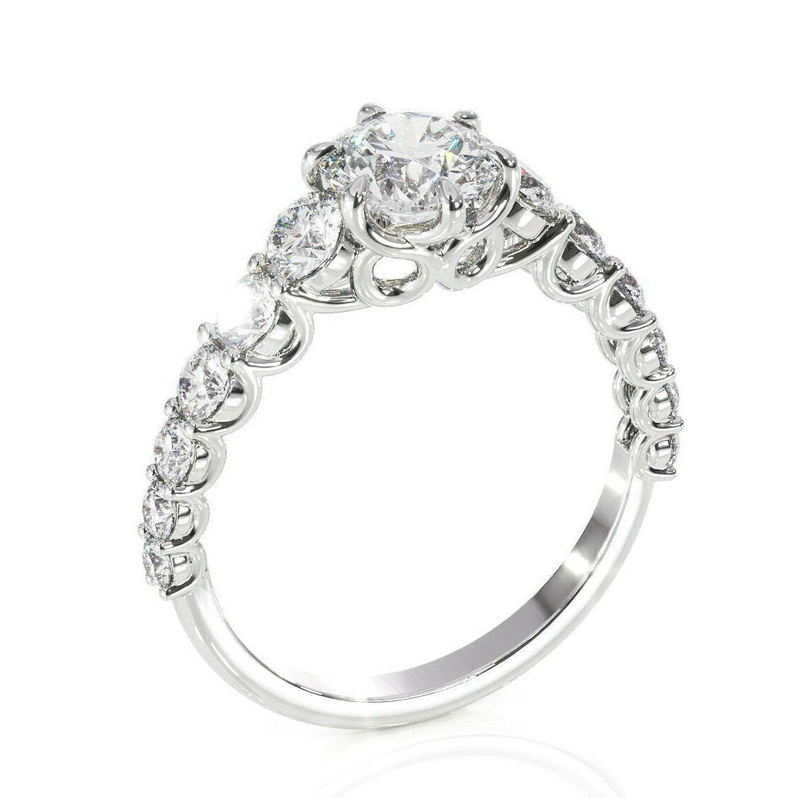 3Ct Round Cut Diamond with Accents Solitaire Engagement Ring 14K White Gold Over