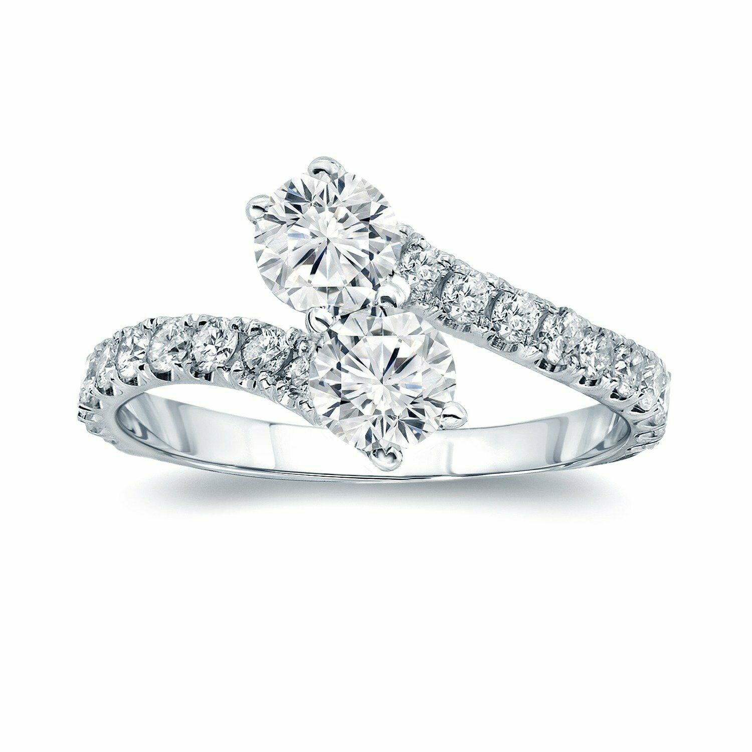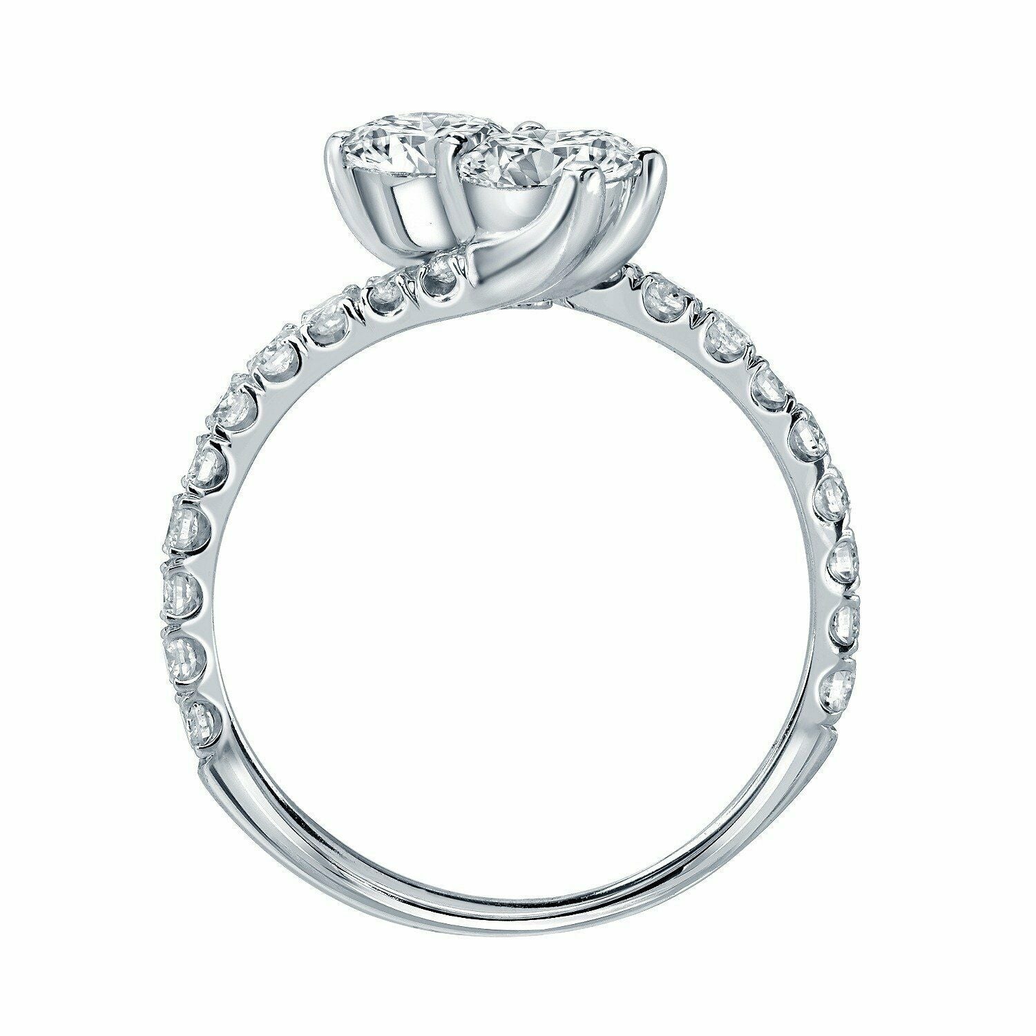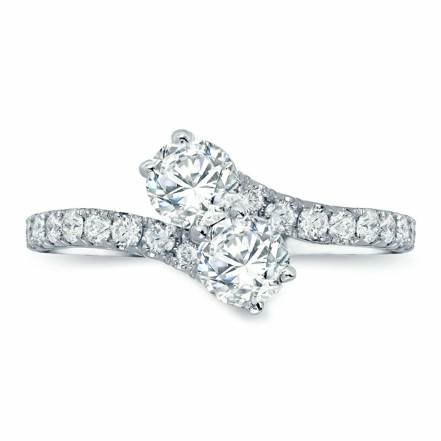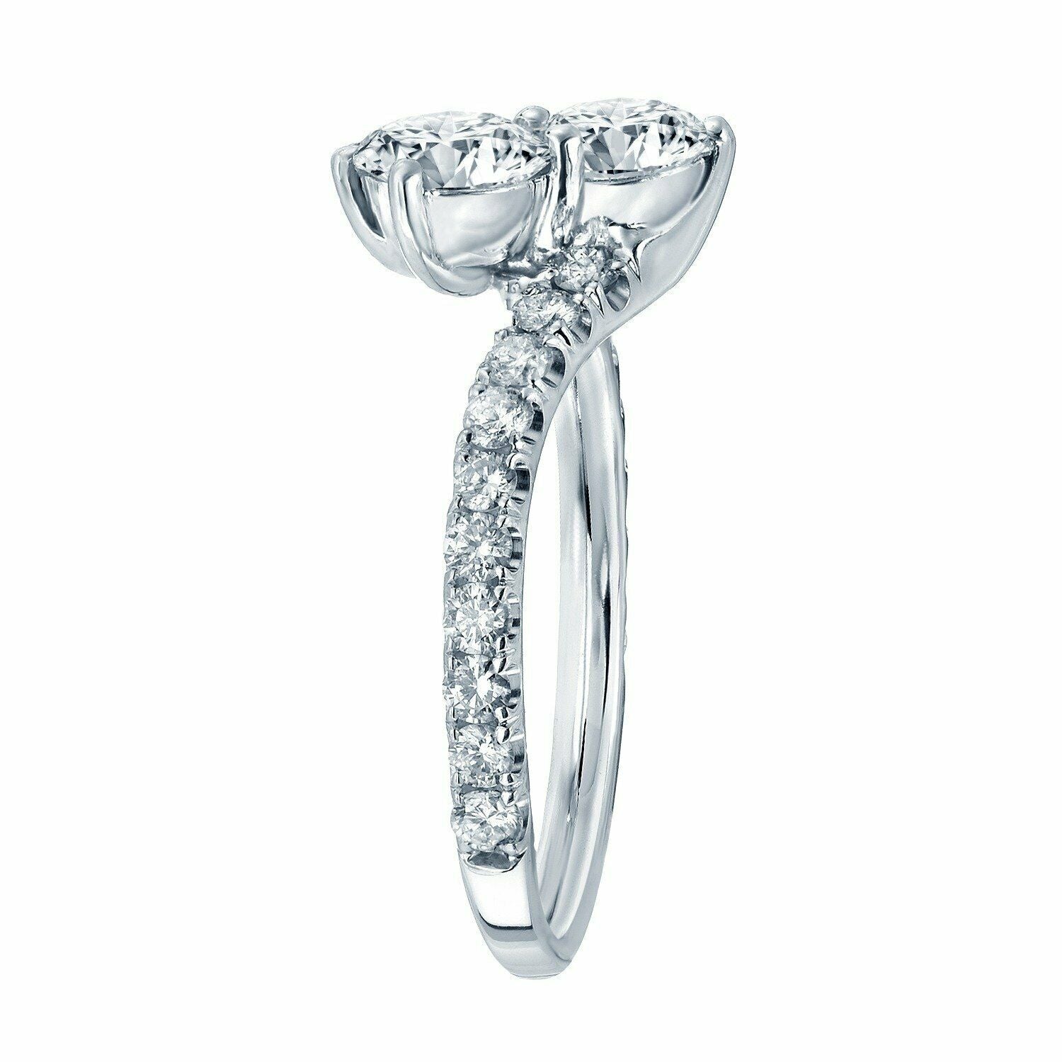 3Ct Round Cut DVVS1 Diamond 2 Stone Bypass Engagement Ring 14K White Gold Finish