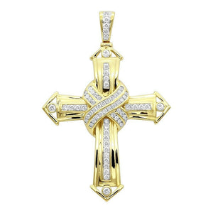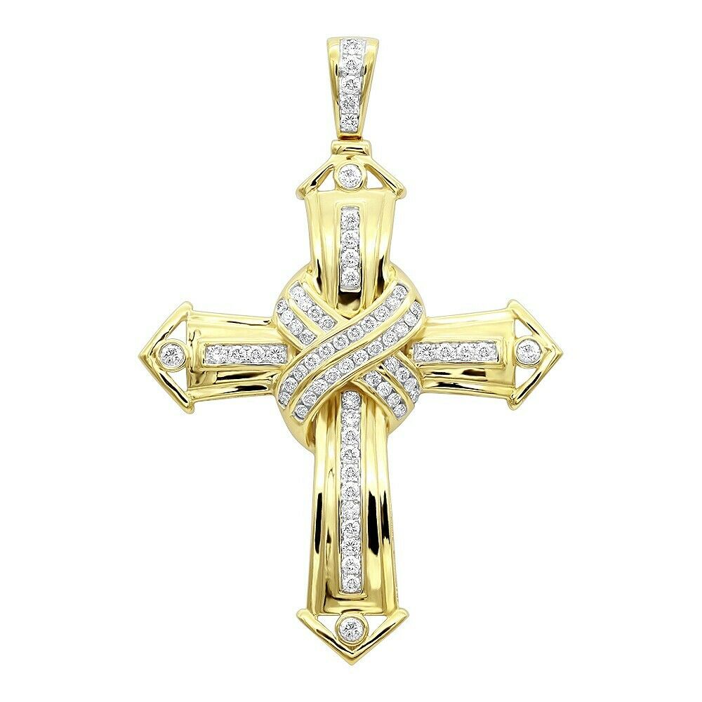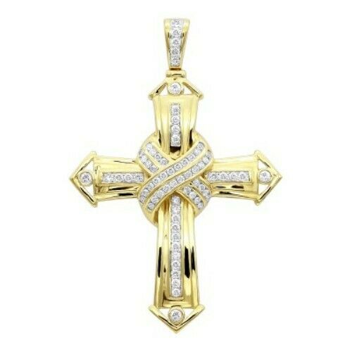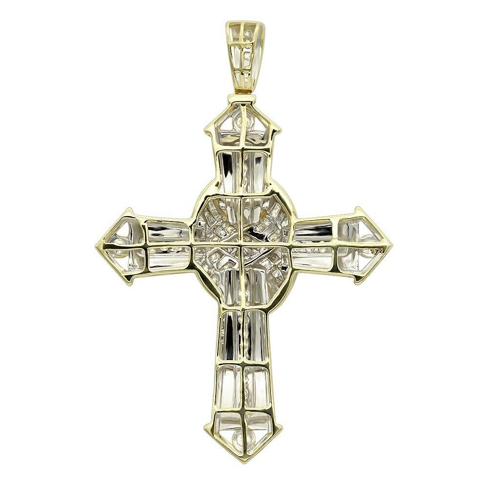 3Ct Round Cut DVVS1 Diamond Jesus Cross Pendant 14K Yellow Gold Finish NO CHAIN