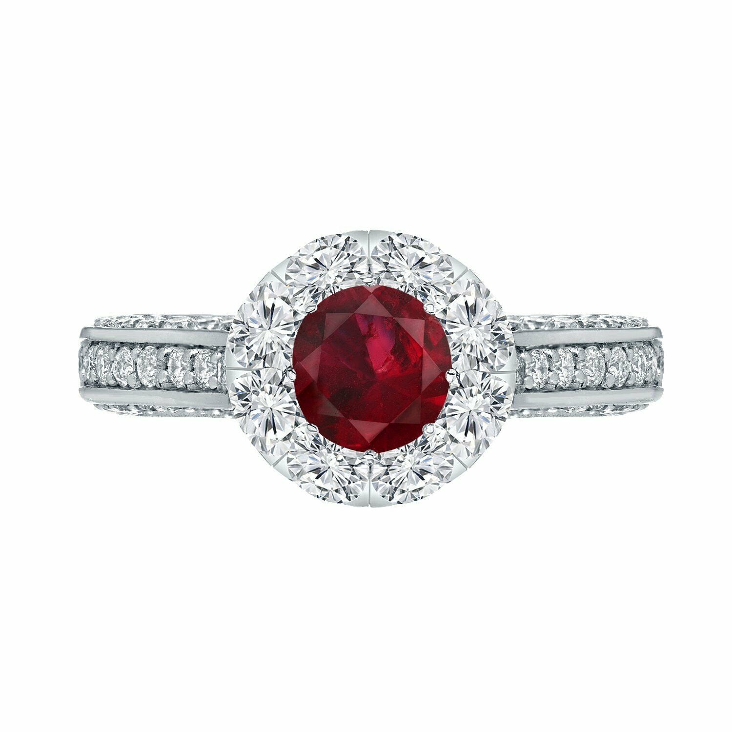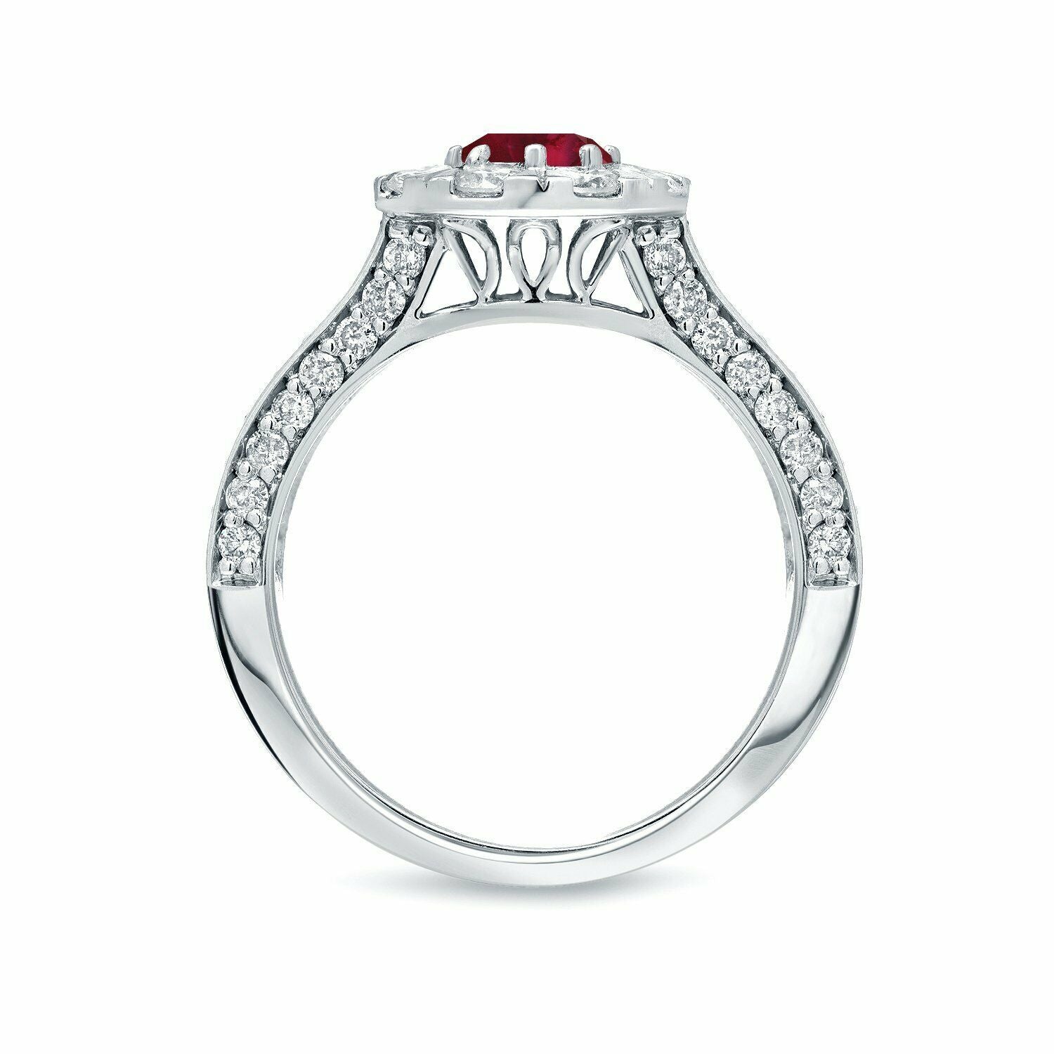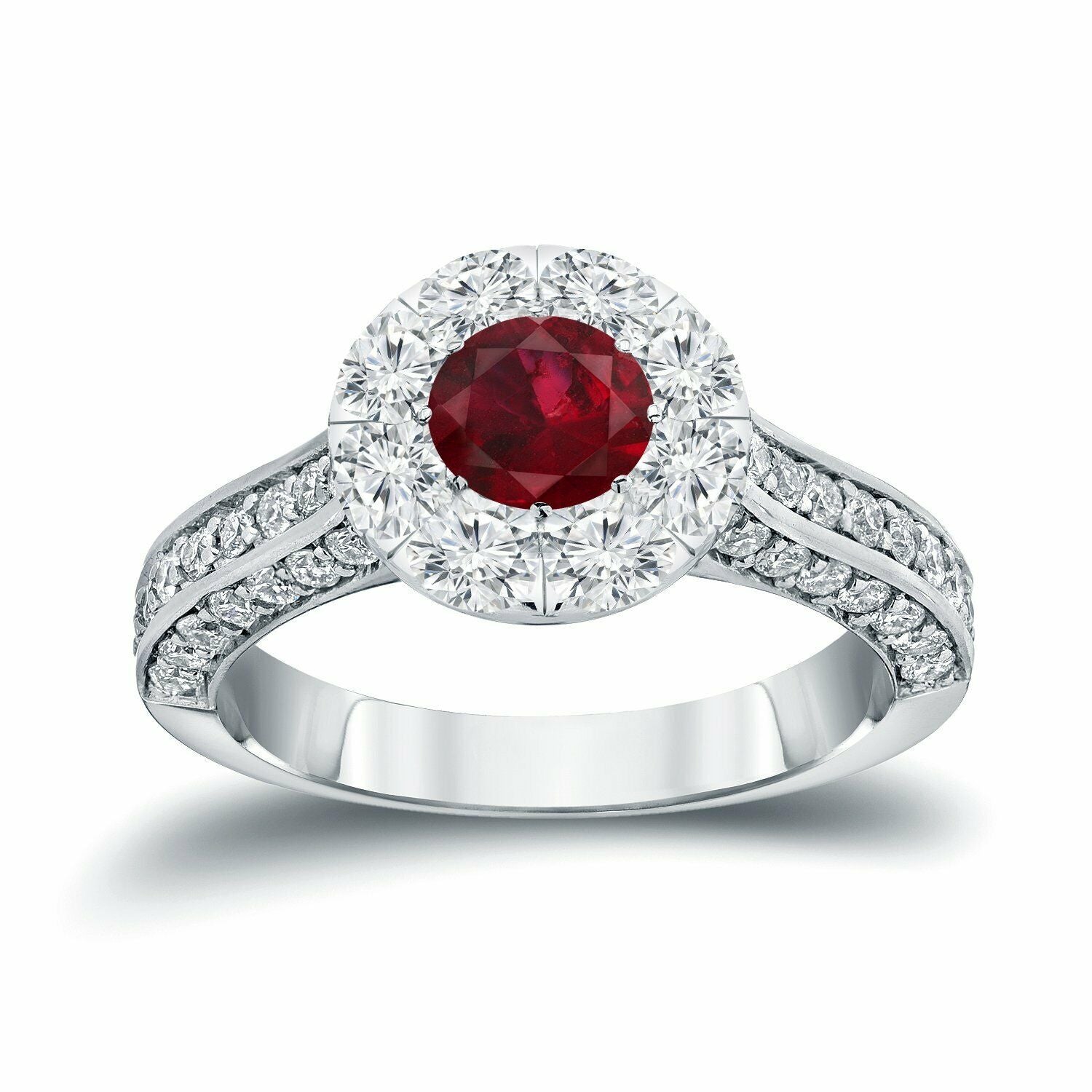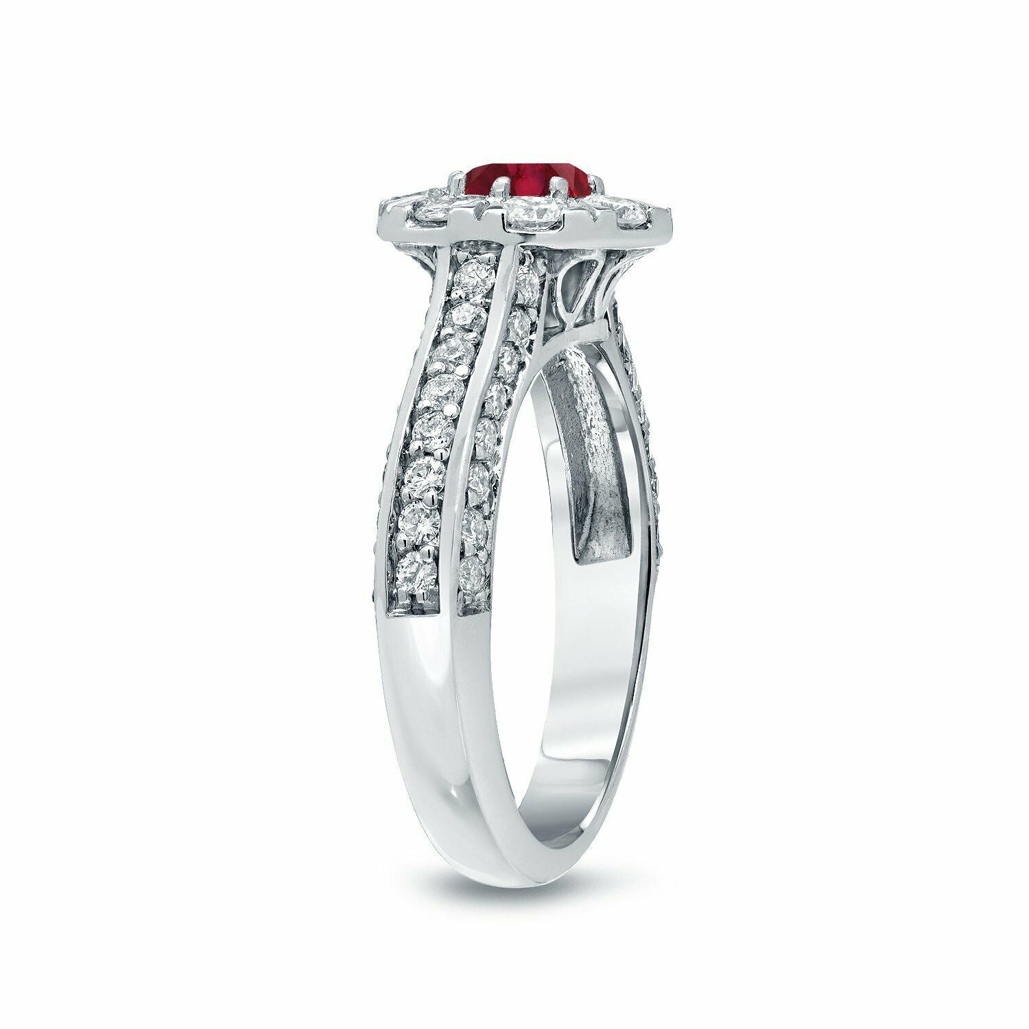 3Ct Round Cut Pink Ruby Diamond Cluster Engagement Ring 14K White Gold Finish
