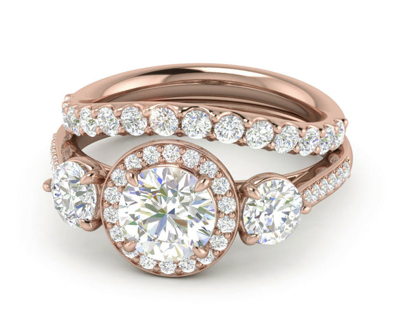 3ct Round Cut VVS1 D Diamond Bridal Set Engagement Ring 14k Rose Gold Finish