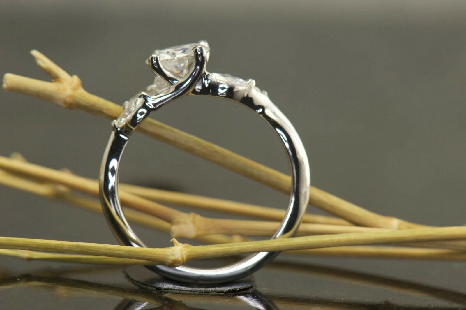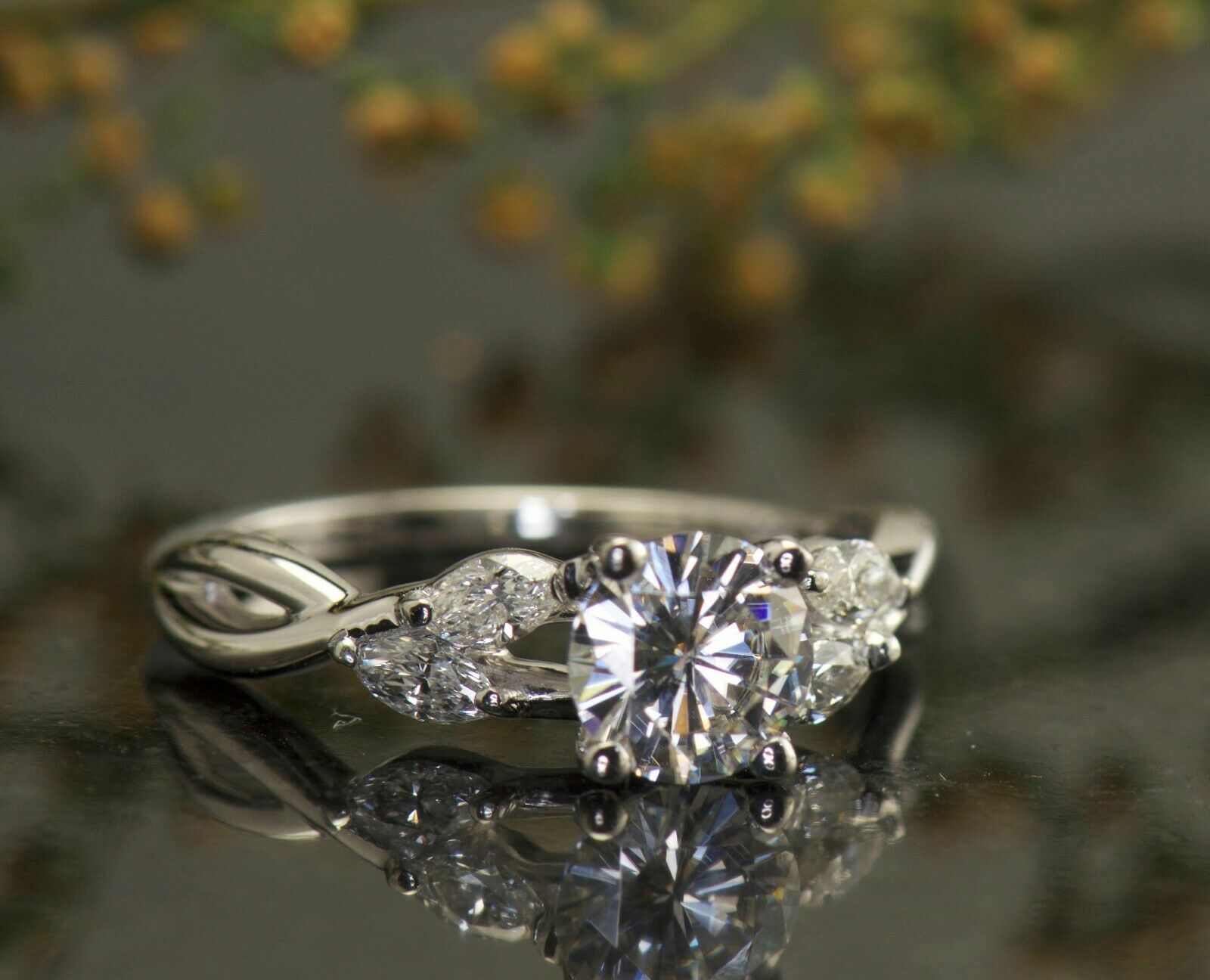 3Ct Round Cut VVS1 Diamond Marquise Accent Engagement Ring 14K White Gold Finish