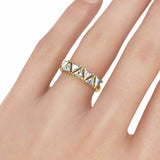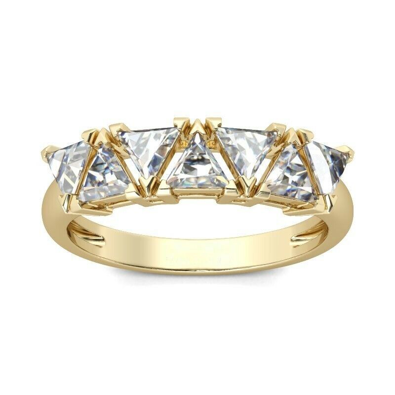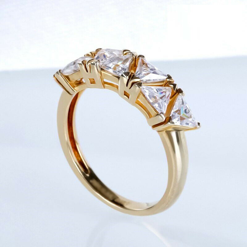 3Ct Trillion Cut Diamond Alternating Design Engagement Ring 14K Yellow Gold Over