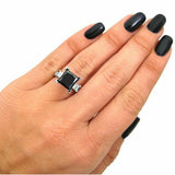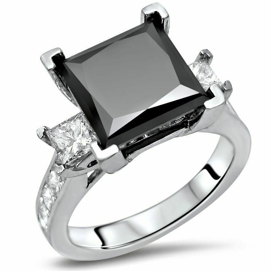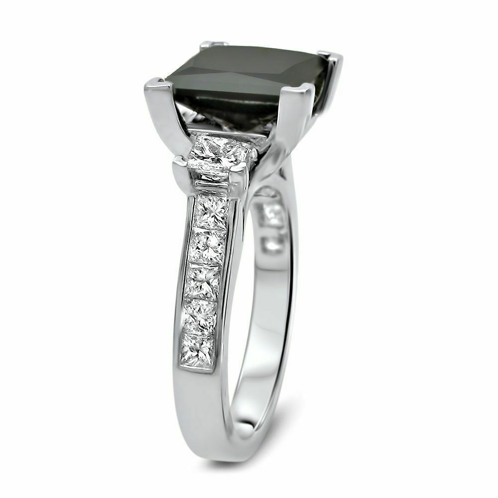 4.5Ct Princess Cut Black Diamond Accents Solitaire Ring 14K White Gold Finish