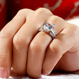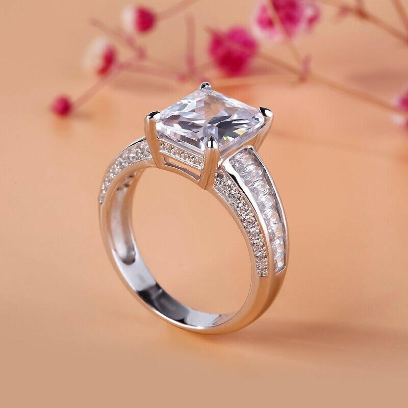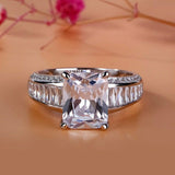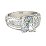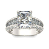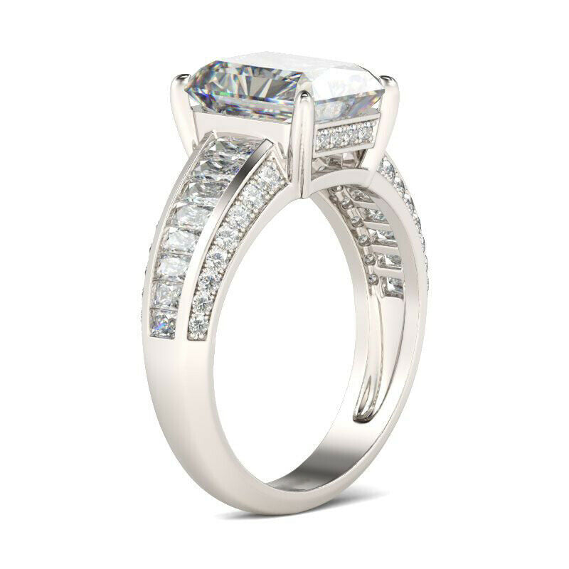 4.5Ct Radiant Cut Diamond Solitaire Ring 14K White Gold Finish Baguette Accents