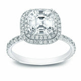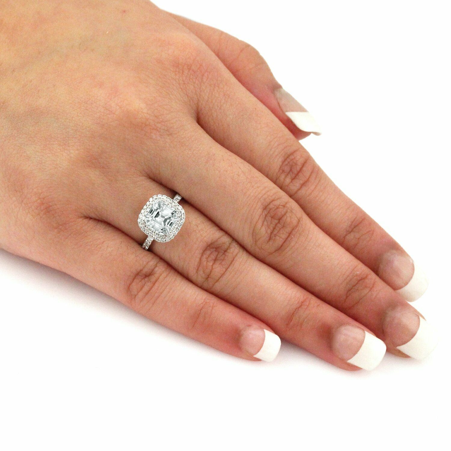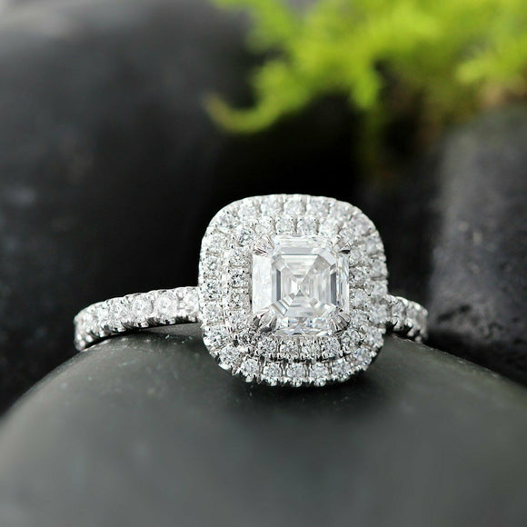 4Ct Asscher Cut Diamond Dual Halo Solitaire Engagement Ring 14K White Gold Over