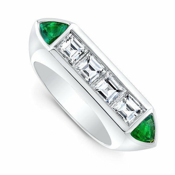 4Ct Asscher Cut Diamond Emerald Art Deco Engagement Ring 14K White Gold Finish