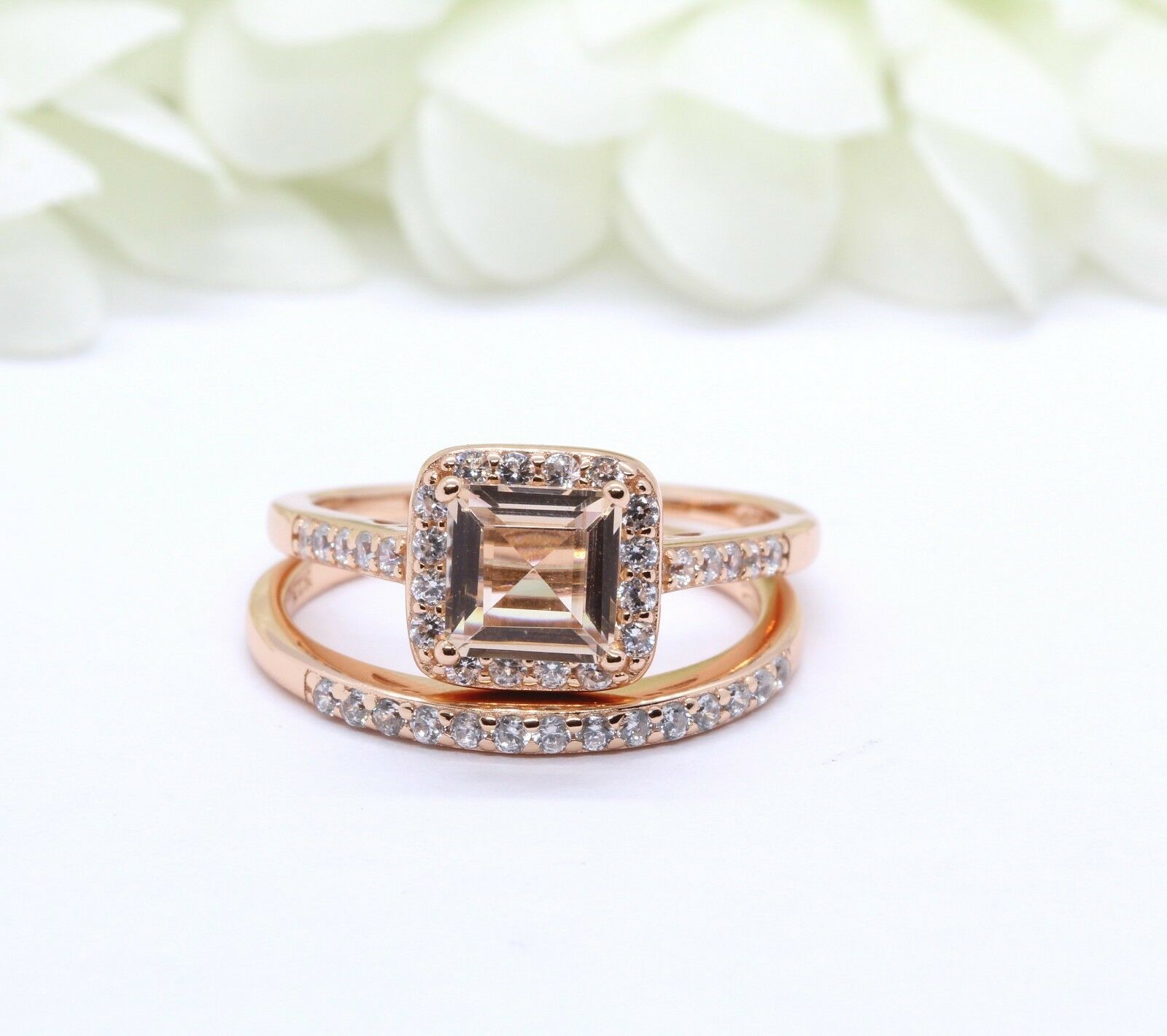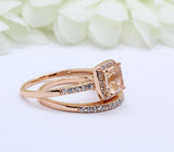 4Ct Asscher Cut Peach Morganite Diamond Bridal Set Ring Band 14K Rose Gold Over