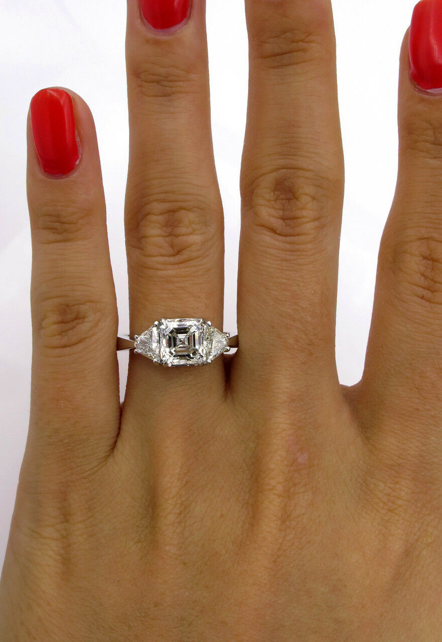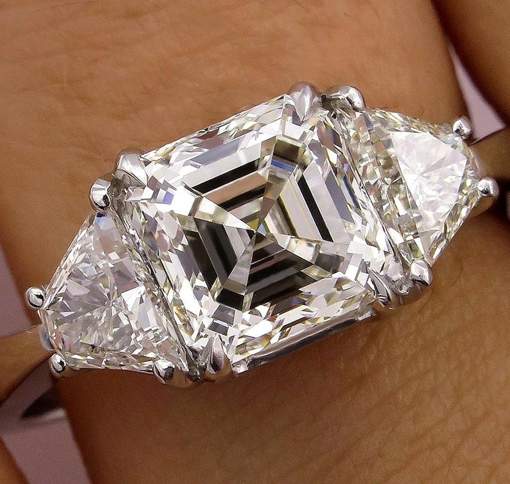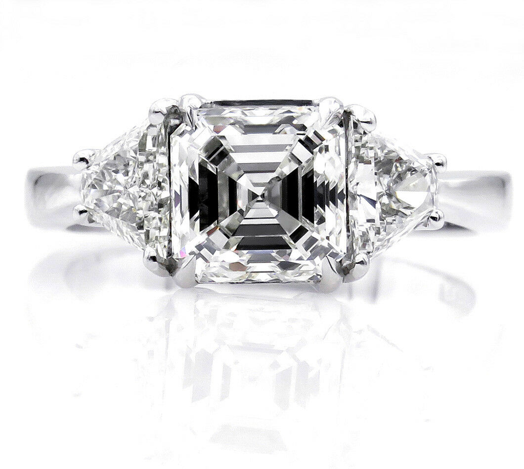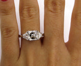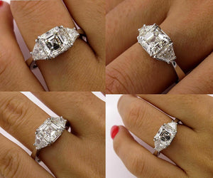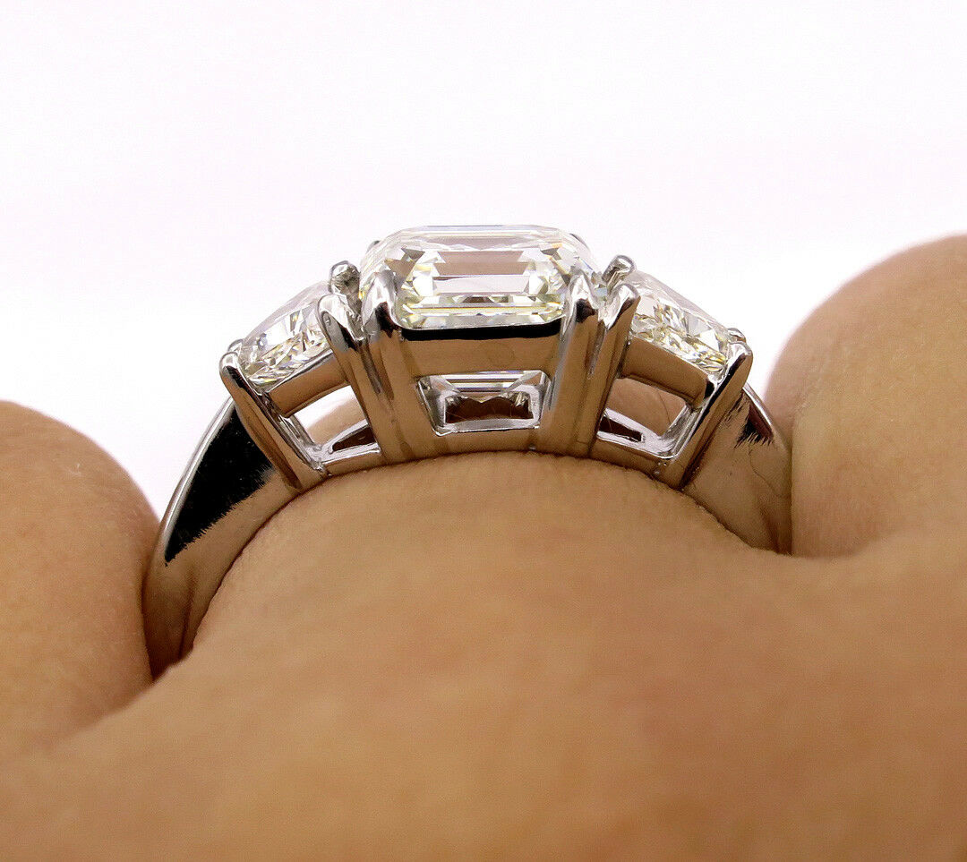 4Ct Asscher Cut Trilogy Engagement Ring 14K White Gold Finish Trapezoid Accents