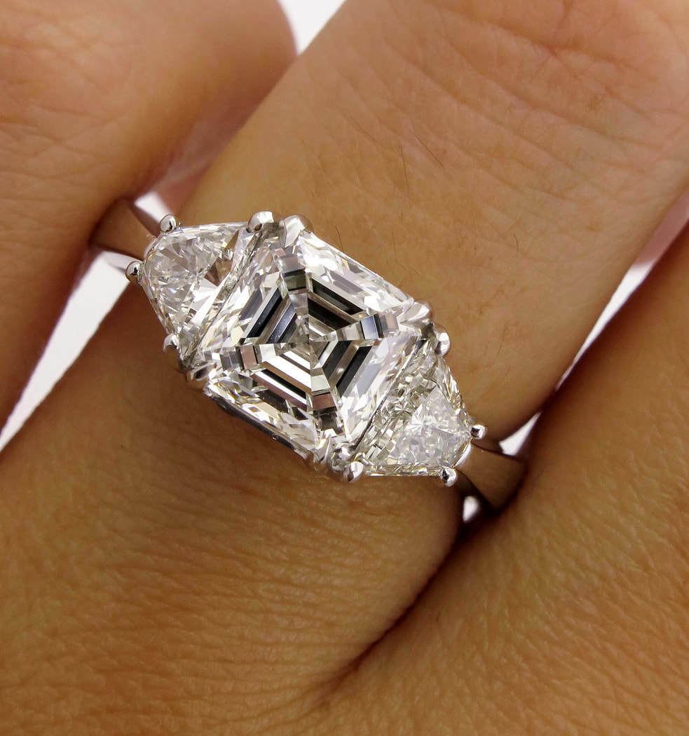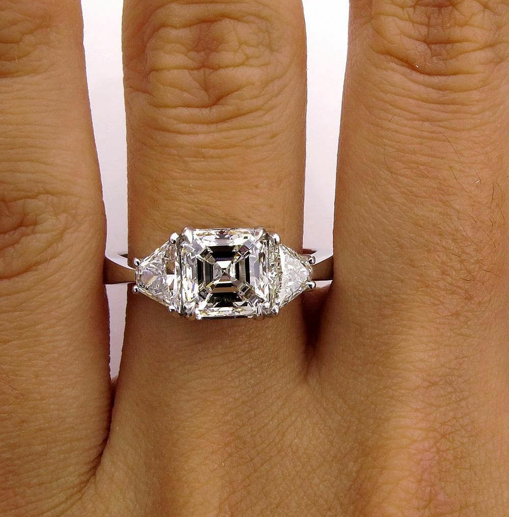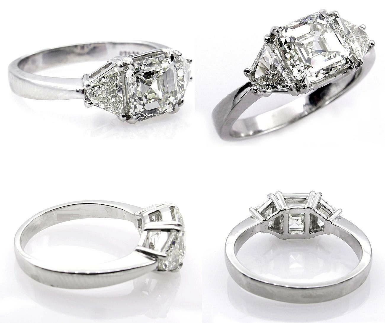 4Ct Asscher Cut Trilogy Engagement Ring 14K White Gold Finish Trapezoid Accents