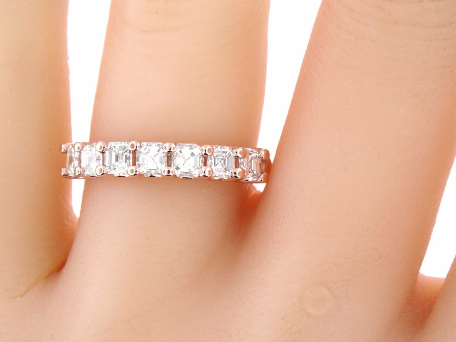 4Ct Asscher Cut VVS1/D Diamond Half Eternity Wedding Band 14K Rose Gold Finish