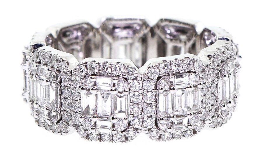 4ct Baguette Cut Eternity Wide Halo Cocktail Wedding Band 14k White Gold Finish
