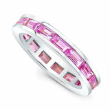 4Ct Baguette Cut Pink Sapphire Full Eternity Wedding Band 18K White Gold Finish