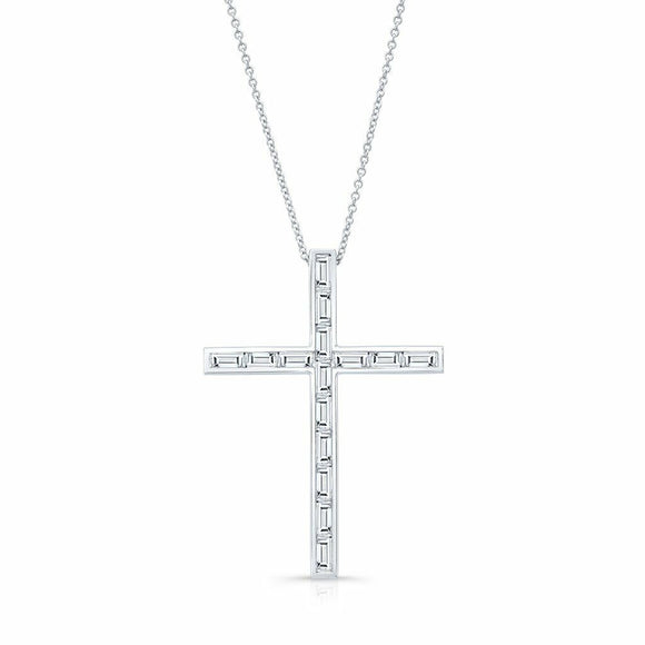 4ct Baguette Diamond Cross Jesus Christ Pendant with Chain 14k White Gold Finish