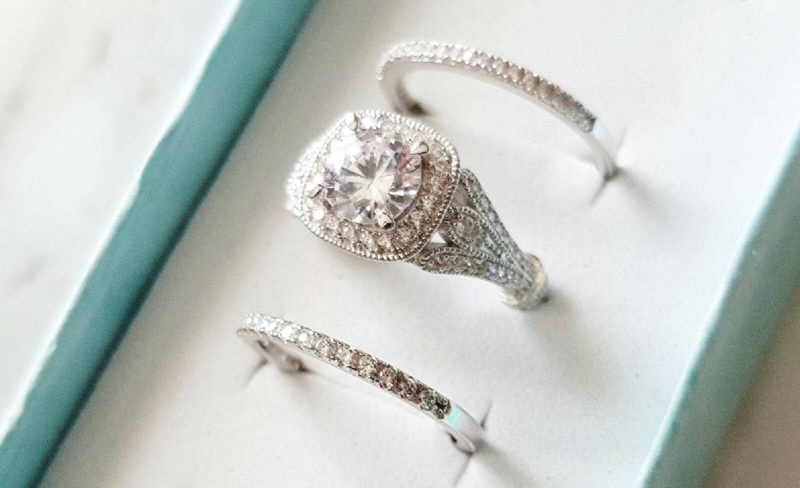 4Ct Cushion Cut Diamond Vintage Bridal Trio Set Ring Band 14K White Gold Finish