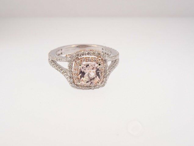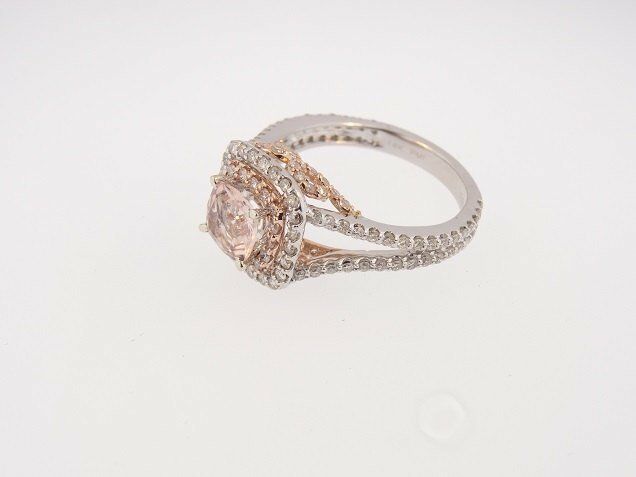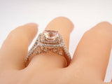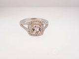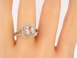 4Ct Cushion Cut Peach Morganite Dual Halo Engagement Ring 14K White Gold Finish
