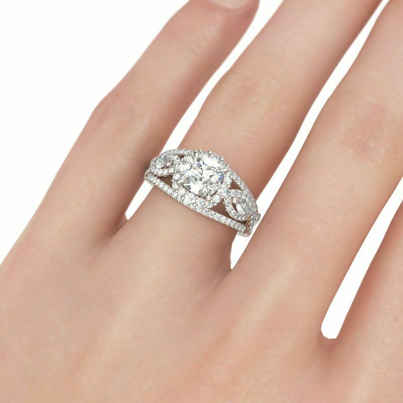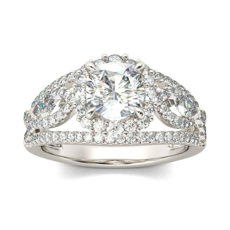 4Ct Cushion Cut VVS1 Diamond Halo Art Deco Engagement Ring 14K White Gold Finish
