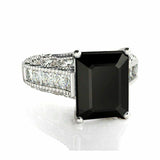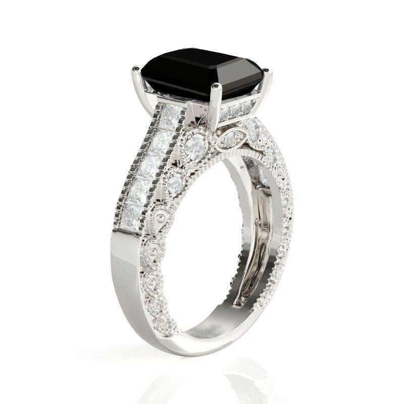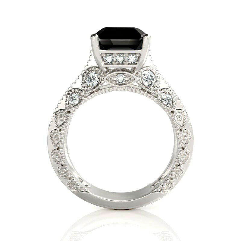 4Ct Emerald Cut Black Diamond Vintage Engagement Ring 18K White Gold Finish