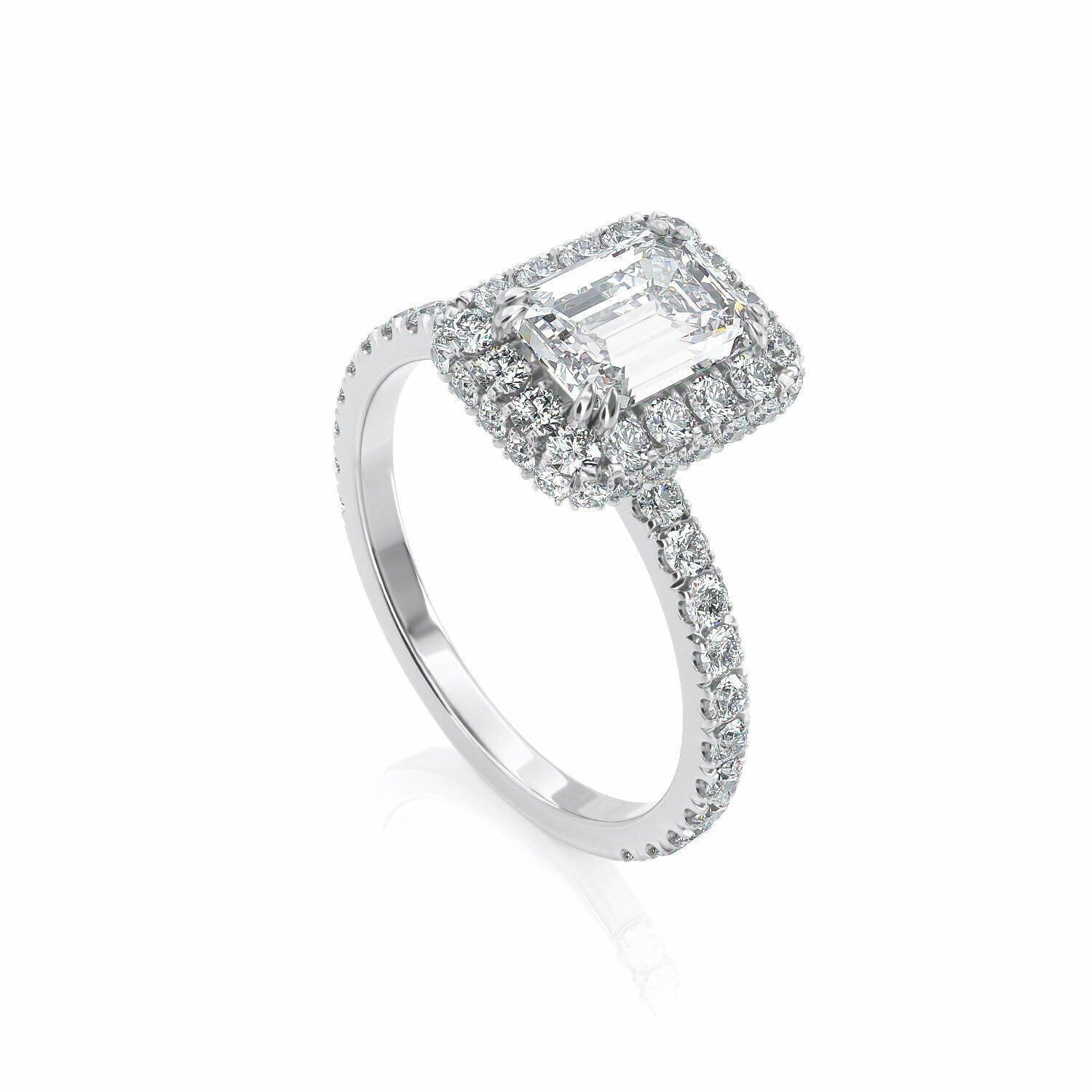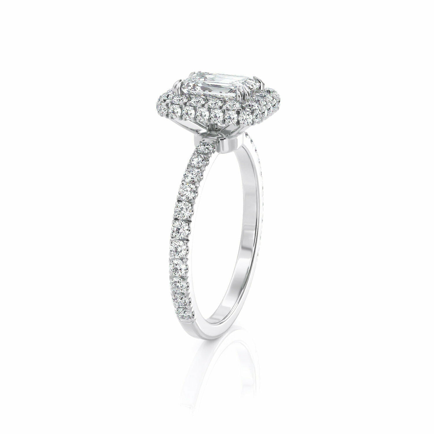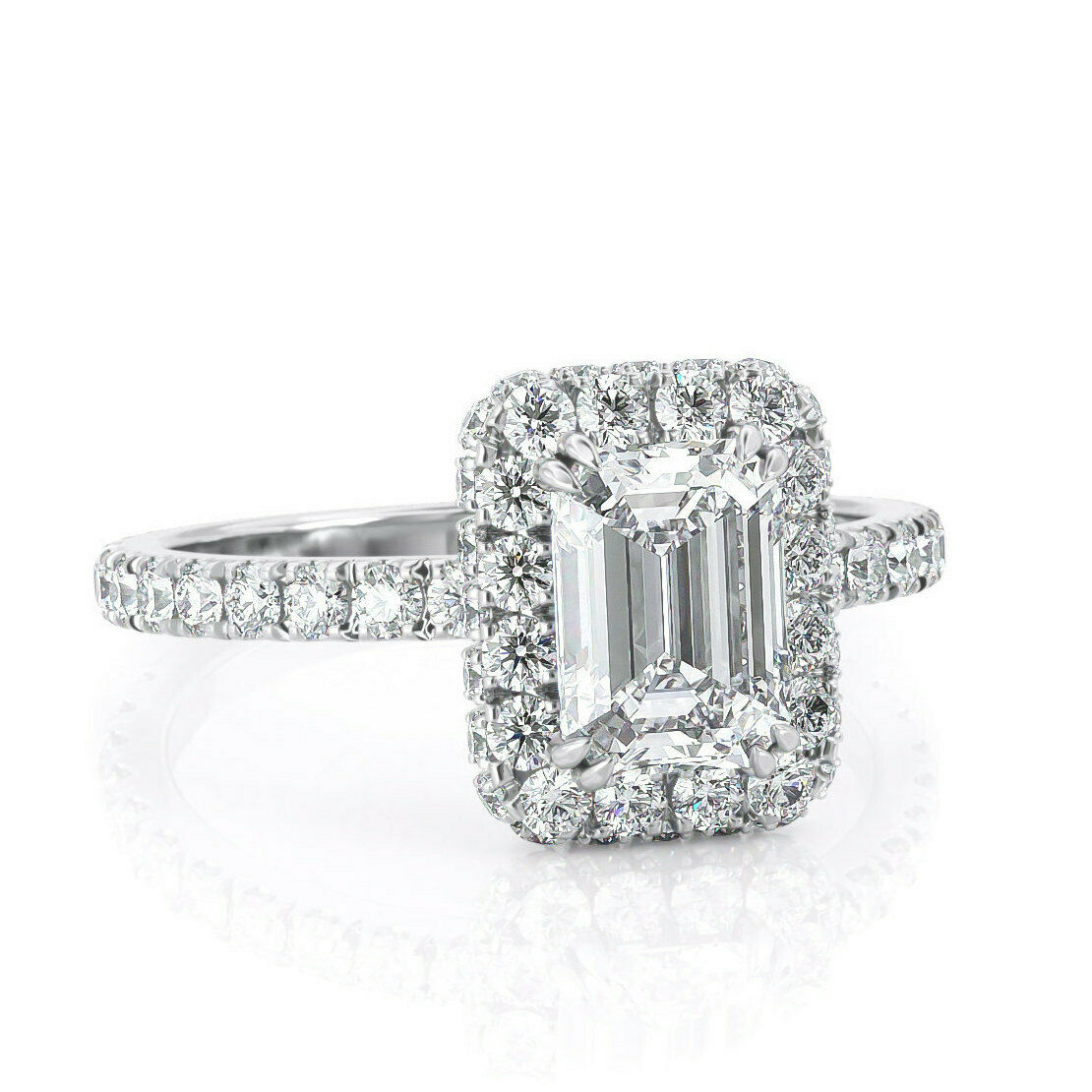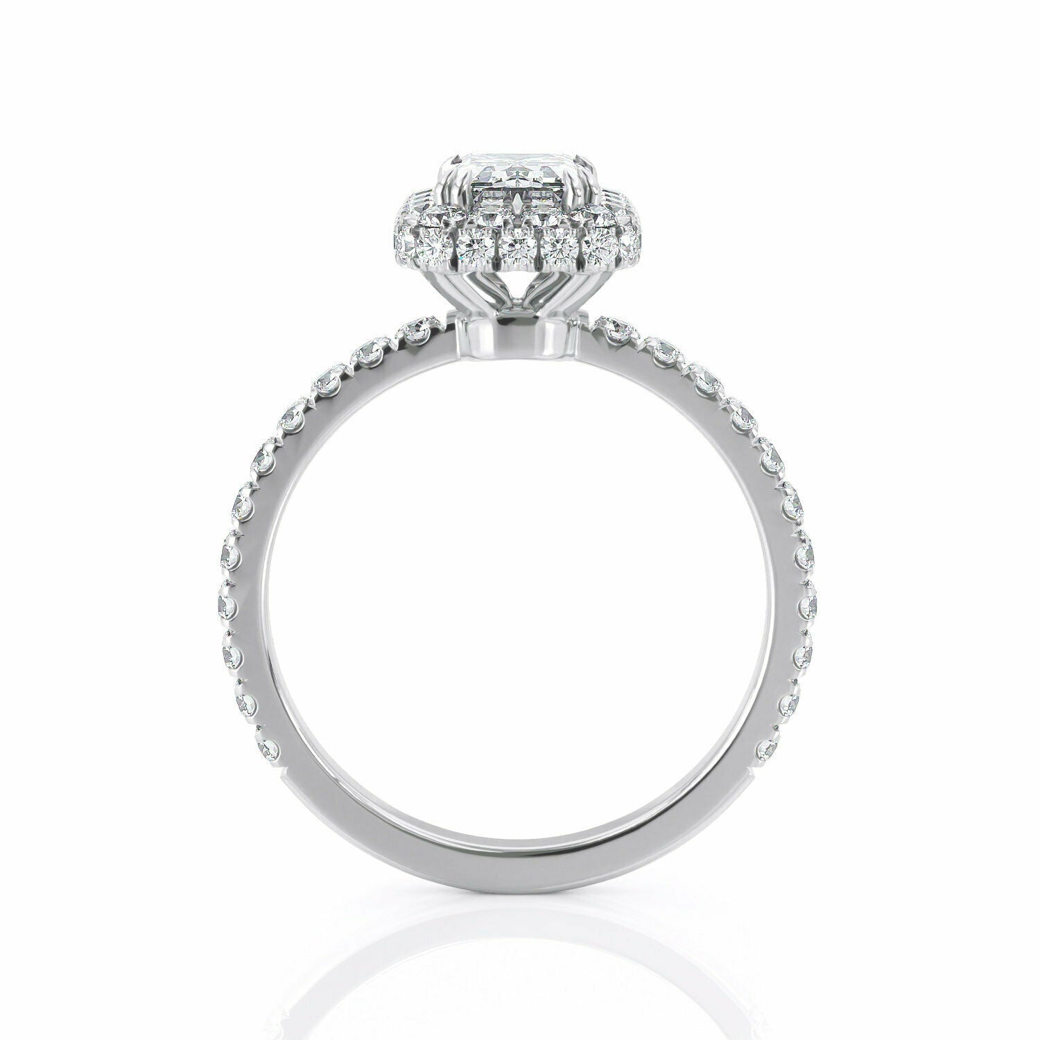 4Ct Emerald Cut Diamond Accent Dual Halo Engagement Ring 14K White Gold Finish