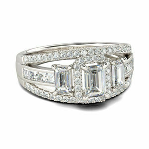 4Ct Emerald Cut Diamond Cocktail Gatsby Engagement Ring 14K White Gold Finish