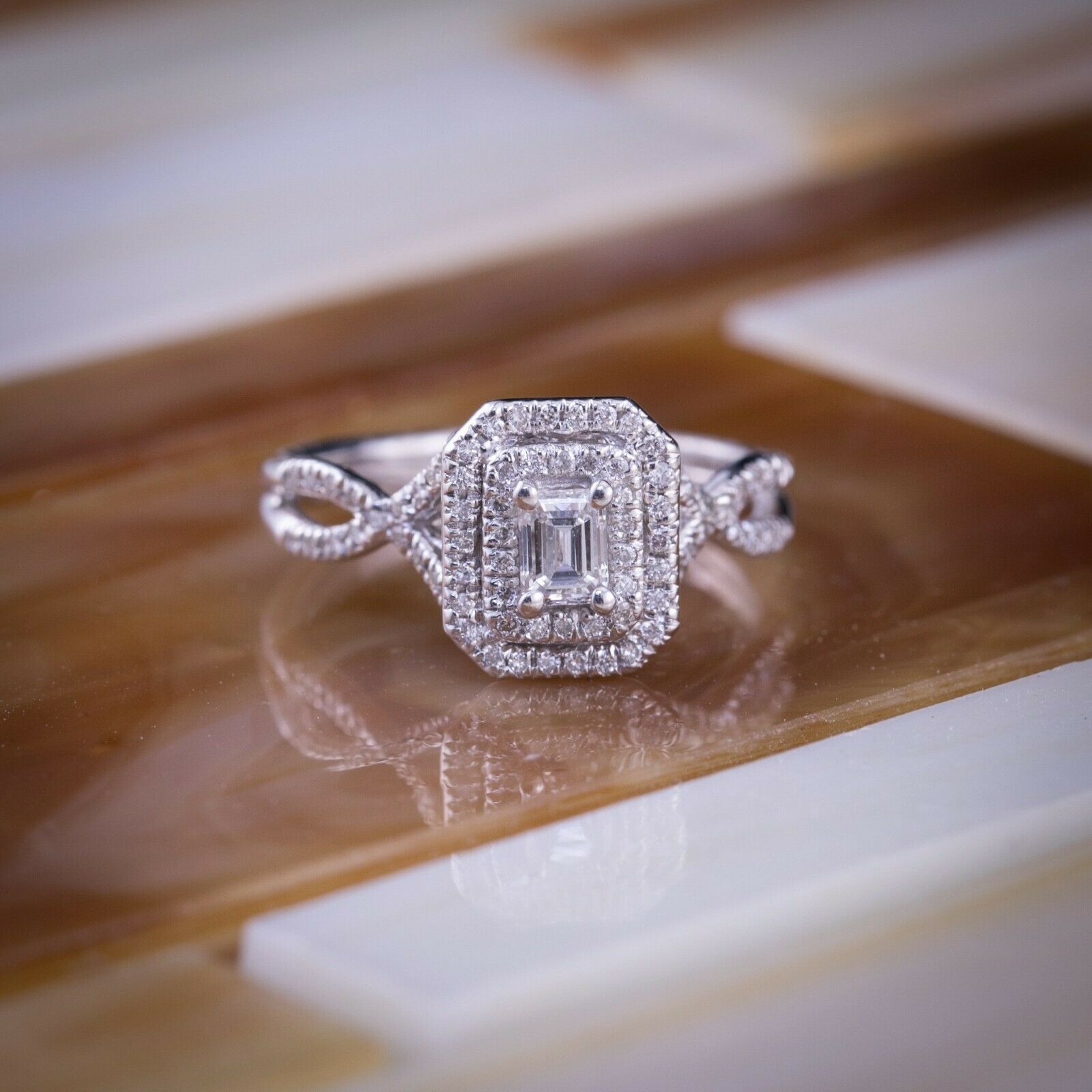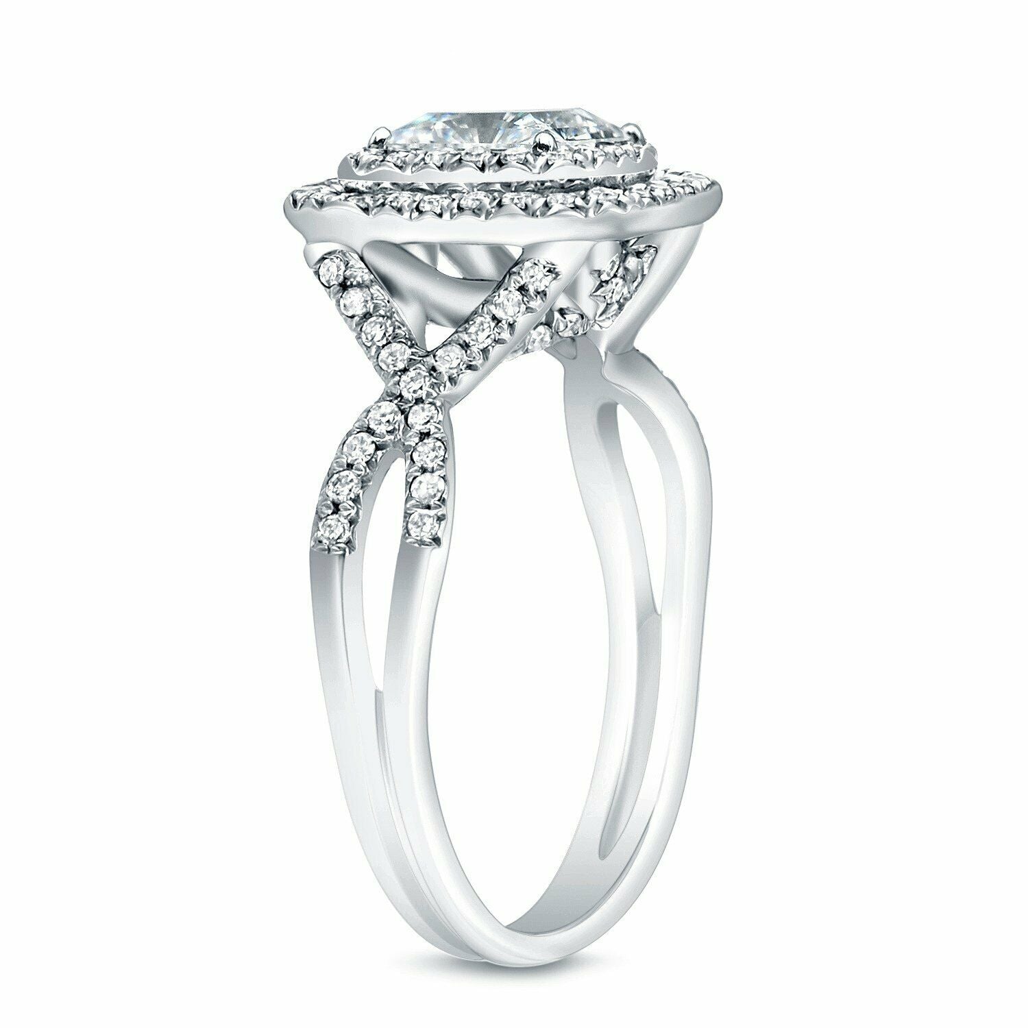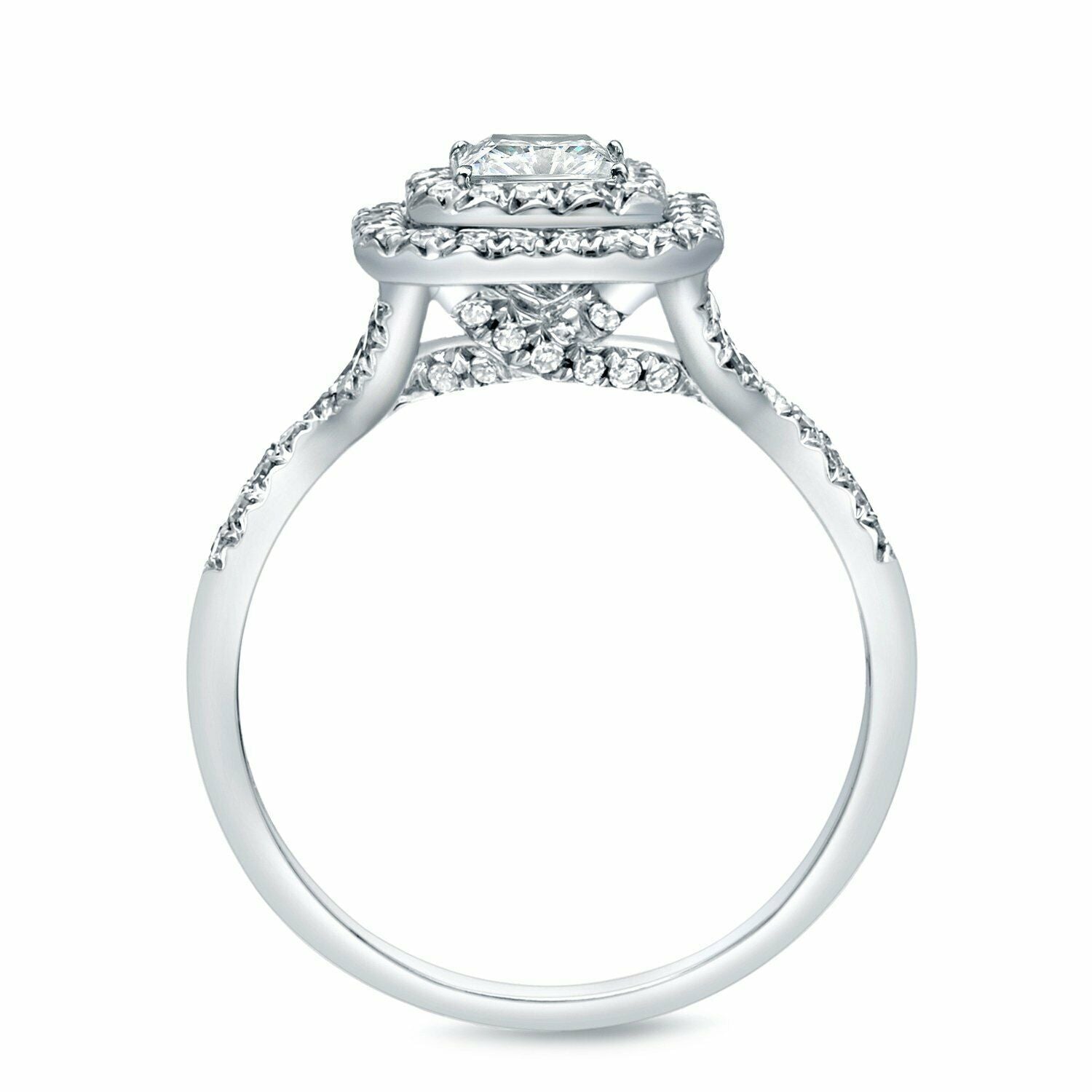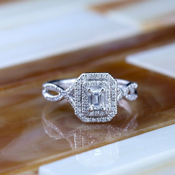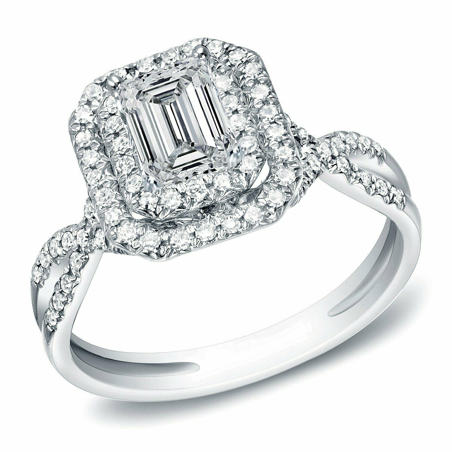 4Ct Emerald Cut Diamond Split Band Dual Halo Engagement Ring 14K White Gold Over