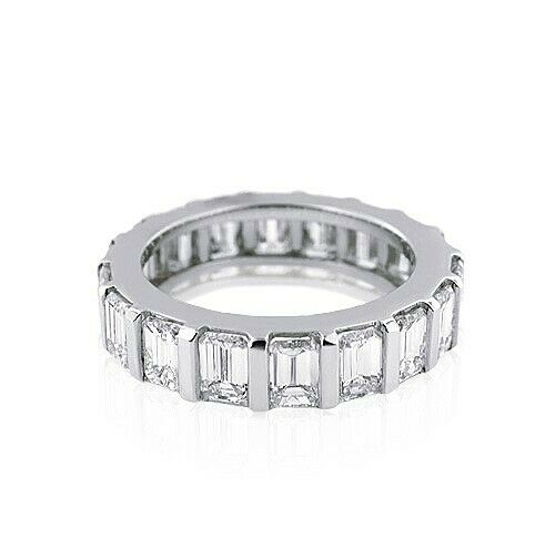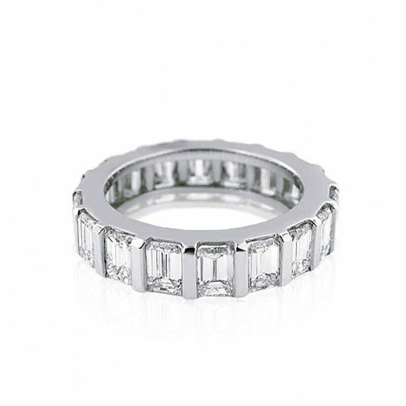 4Ct Emerald Cut Diamond Unique Full Eternity Wedding Band 18K White Gold Finish