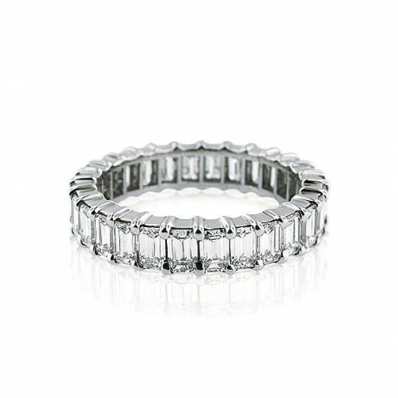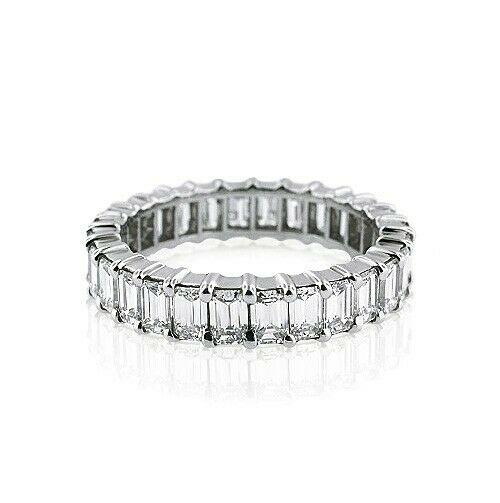 4Ct Emerald Cut DVVS1 Diamond Full Eternity Wedding Band 14K White Gold Finish