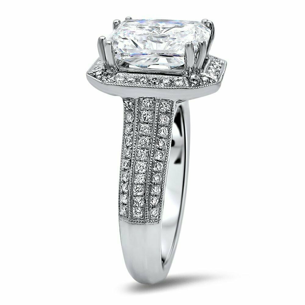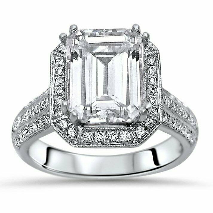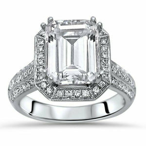 4Ct Emerald Cut DVVS1 Diamond Halo Vintage Engagement Ring 14K White Gold Finish