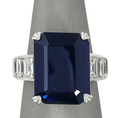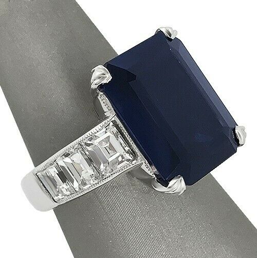 4Ct Emerald Cut Sapphire Asscher Diamond Accent Trilogy Ring 14K White Gold Over
