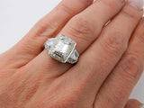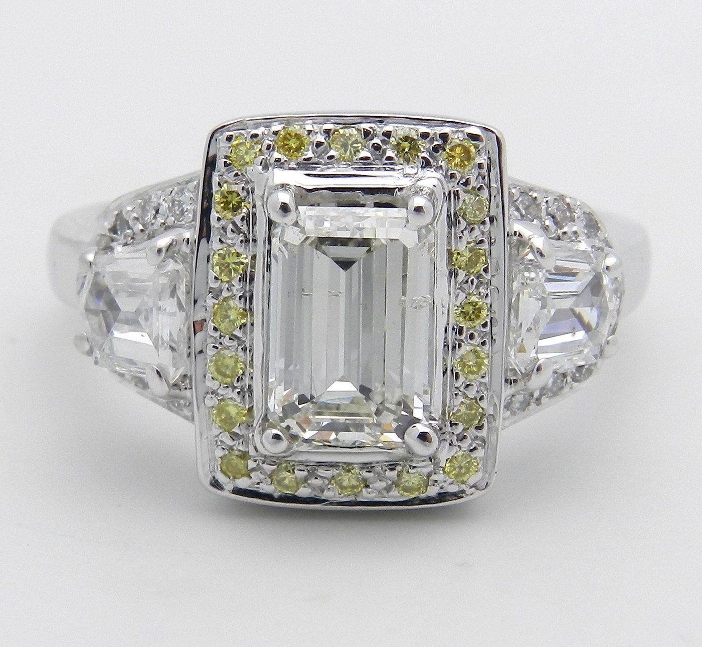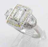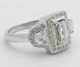 4ct Emerald Diamond Yellow Halo Trilogy Engagement Ring 14k White Gold Finish